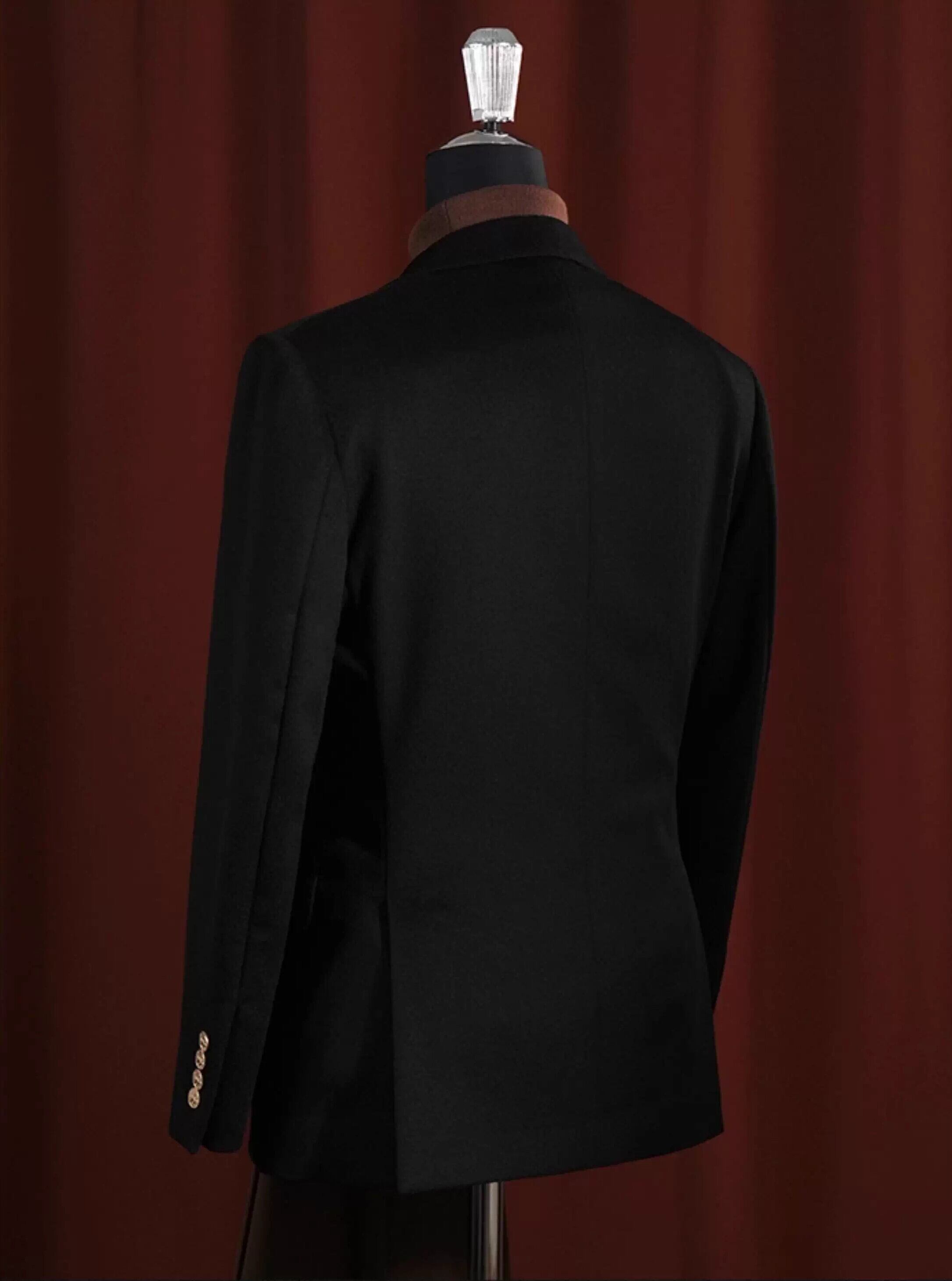 【#10139】カシミヤ混 ダブルブレスト 金ボタン クラシックブラック ブレザー【単品】