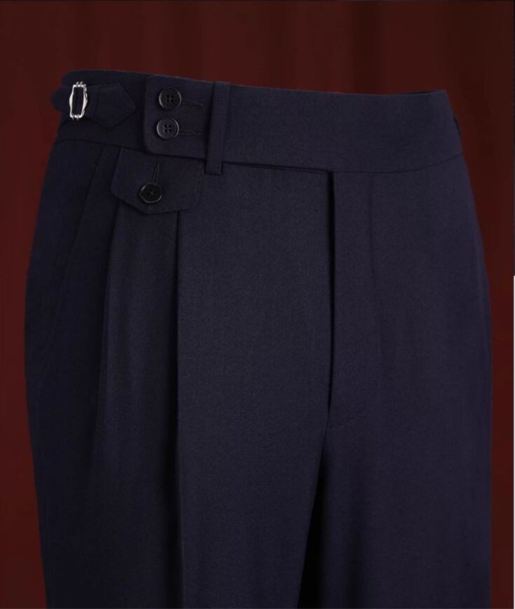 【#10132】メンズ ピュアウール ネイビー ナポリ仕立て ダブルプリーツ スラックス