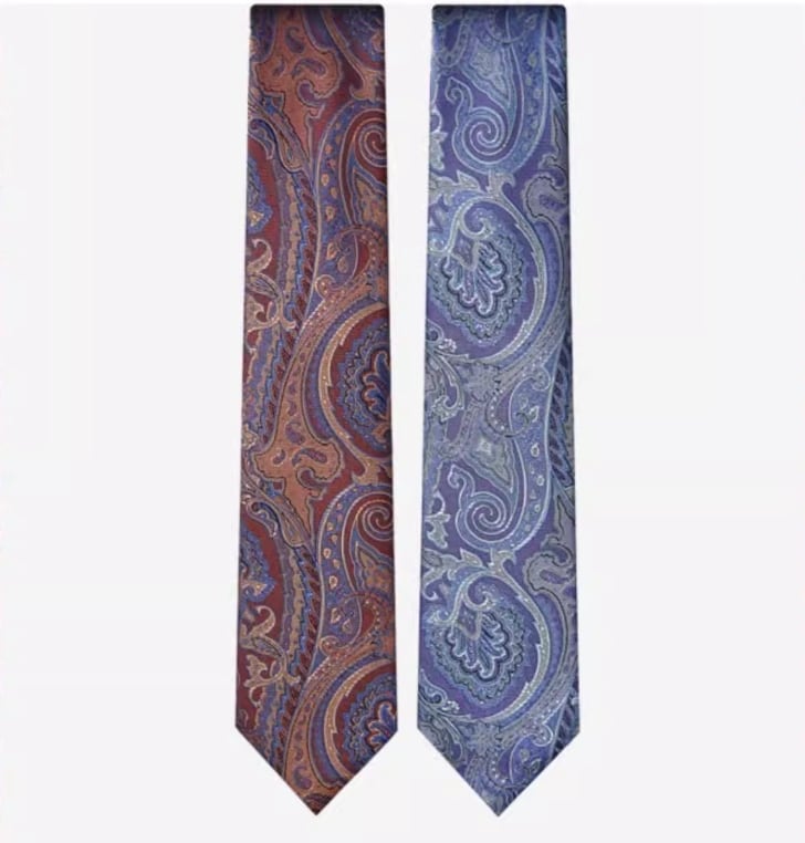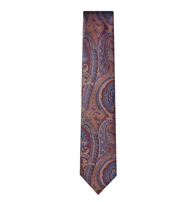 ・ペイズリー柄が特徴のアロータイ(剣先型ネクタイ)は、独自のスタイルを表現します。ブルーとレッドの2色展開があり、どちらもビジネスからフォーマルまで幅広く対応可能です。