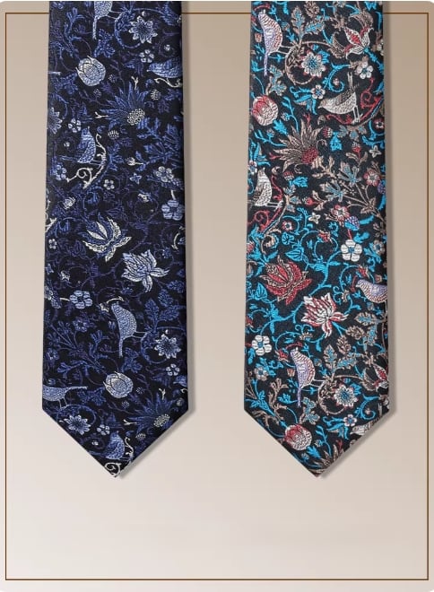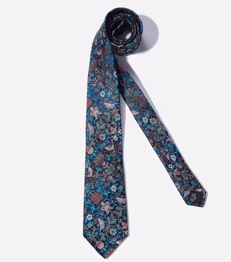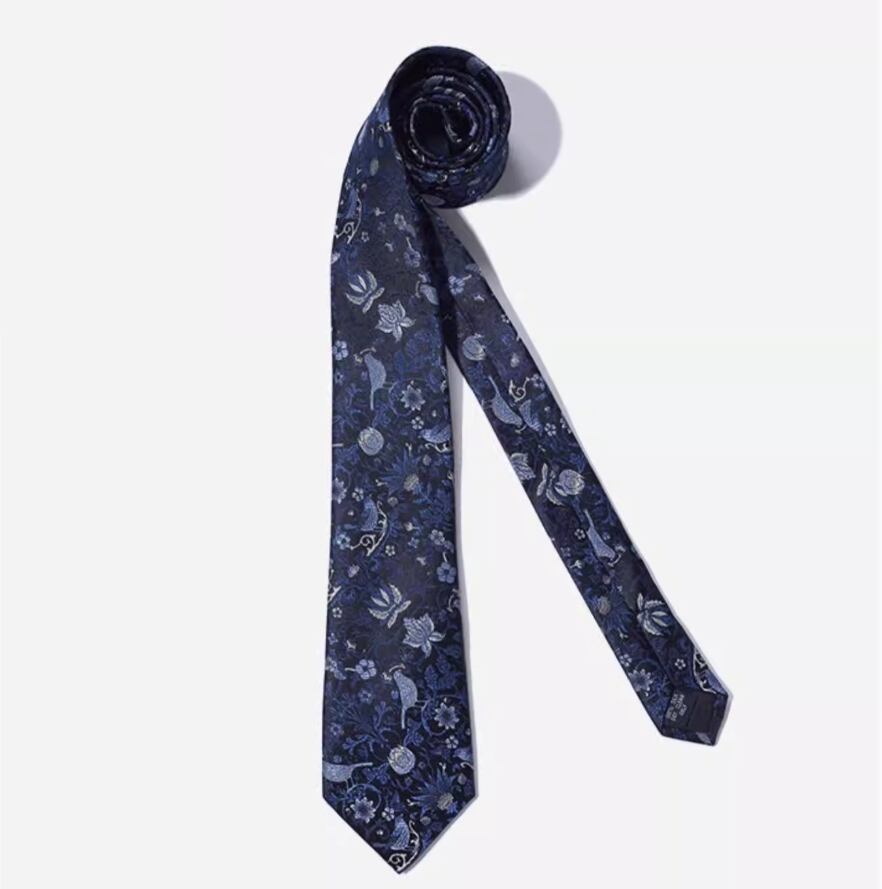 ・美しいヴィンテージ花鳥柄が施されたデザインは、華やかさと個性を引き立てます。アローヘッド型のシルエットとレギュラー幅(約7〜12cm)が、すっきりとしたスタイルを演出し、あらゆるビジネスシーンに最適です。