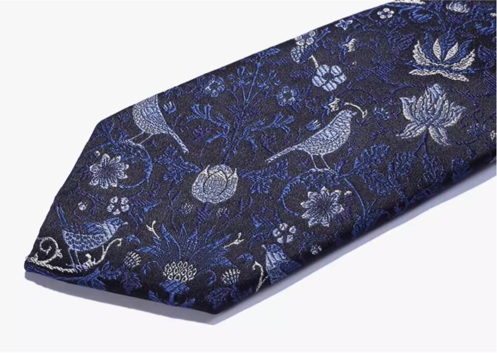 洗練されたスタイルを演出する、【メンズ高級ネクタイ】 ヴィンテージ花鳥柄・先染めシルク(桑蚕糸)100%が新たに登場しました。このネクタイは、上質なシルク100%を使用し、ビジネスだけでなく特別なシーンでもその存在感を発揮します。