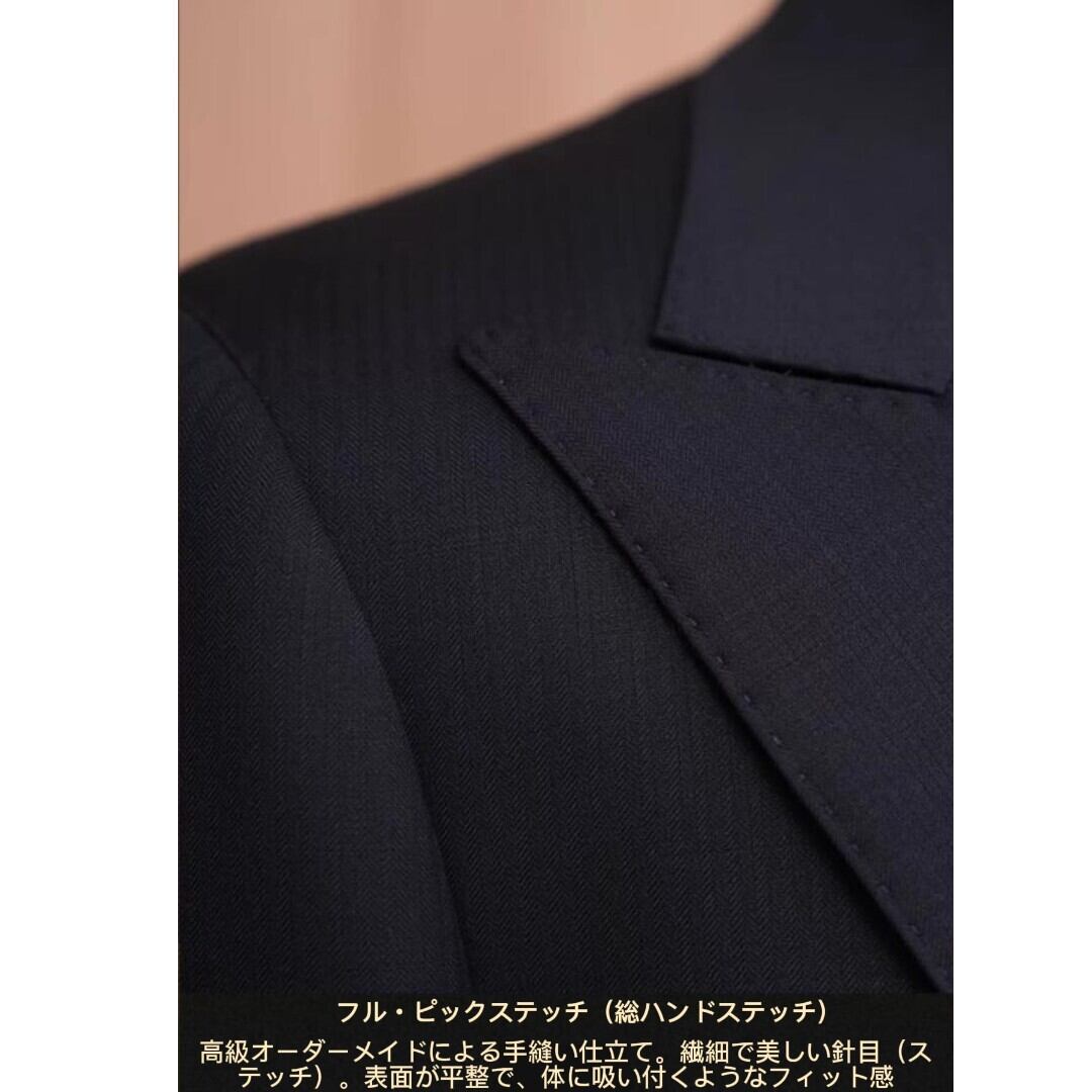 ・ビジネスシーンからフォーマルなイベント、ウエディングなど、さまざまなシーンで幅広くご利用いただける一着です。このスーツを身にまとえば、特別な日や大切な場面でも自信を持って過ごせます。