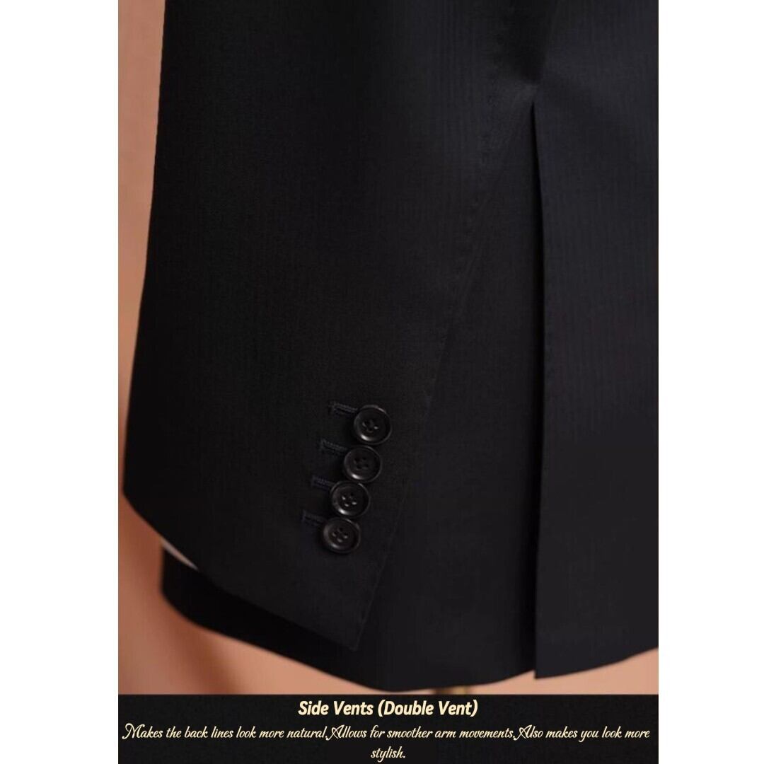 Crafted from premium Super 120’s wool, this suit offers exceptional breathability and comfort. The fabric features a supple texture and a smooth luster, creating an elegant aesthetic. The double vent (side vents) design enhances mobility, ensuring comfort even during extended wear.
