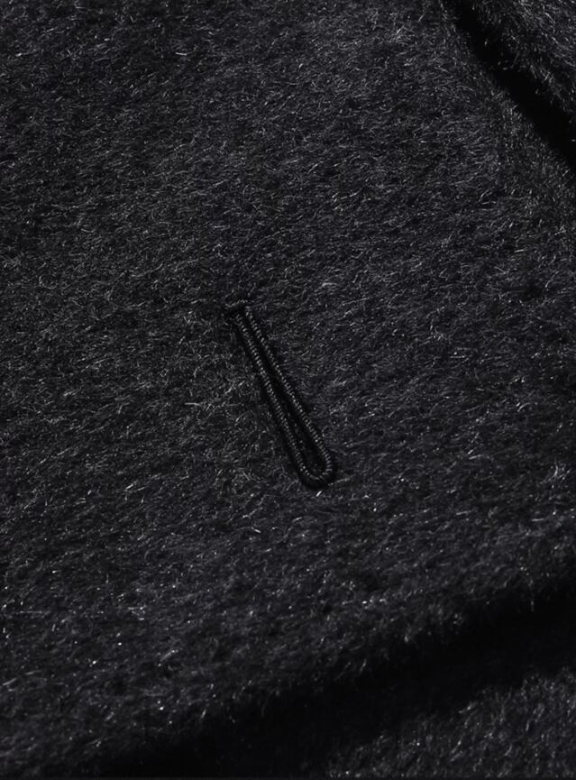 この生地は、優れた保温性、しなやかな柔軟性、そして美しい光沢感を備えています。480gというしっかりとした目付(重さ)により、快適な暖かさと型崩れしない端正なフォルムを実現。冬のビジネスシーンにおける通勤スタイルでも、防寒性と洗練されたスタイル(風度)を完璧に両立させることができます。