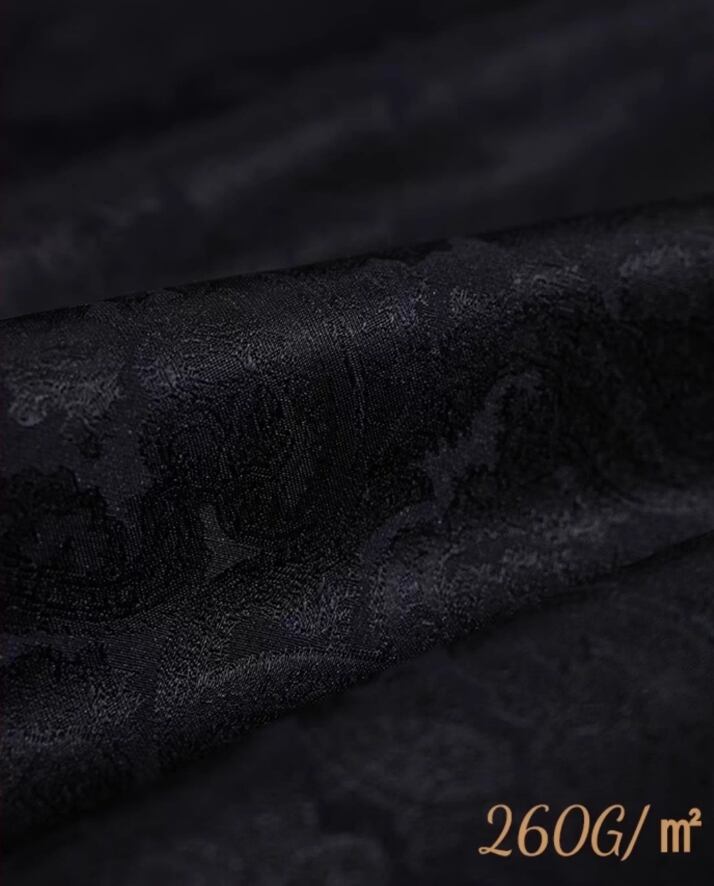 複雑な紋織技術によるシャドー・ペイズリー柄は、まるで朝露の中で花開く秘密の庭園のように、神秘的で人を惹きつける立体的な層を成しています。260gという軽やかな目付(重さ)は、質感と通気性のバランスを巧みに保っており、日光の下で体の動きに合わせて流れるような繊細な光沢を放ちます。それはまるで、着用者が「呼吸する芸術品」を身に纏っているかのようです。