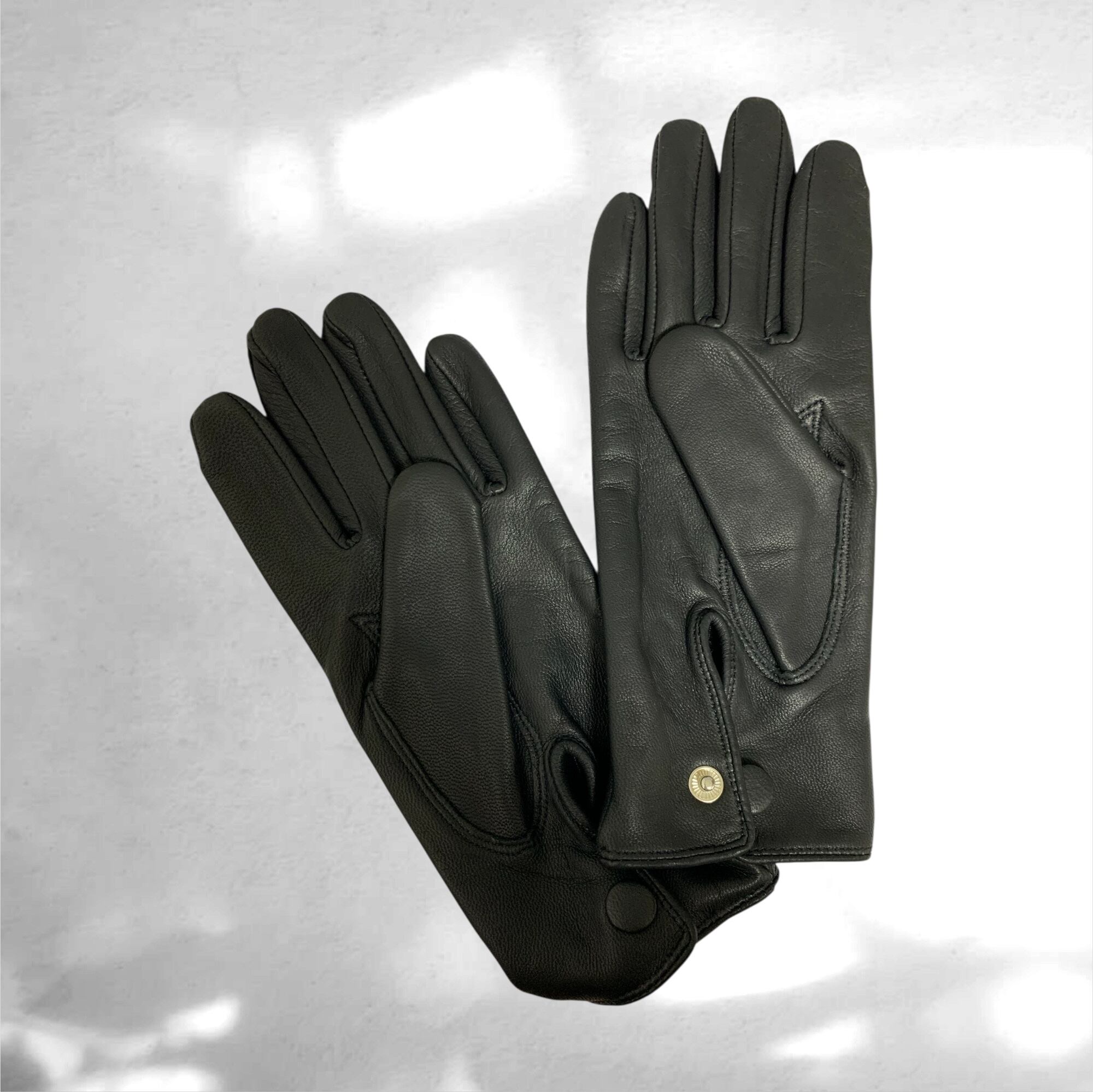 【#10108】スウェーデン 黒 羊革 メンズ 手袋 スリムフィット ボタン付き