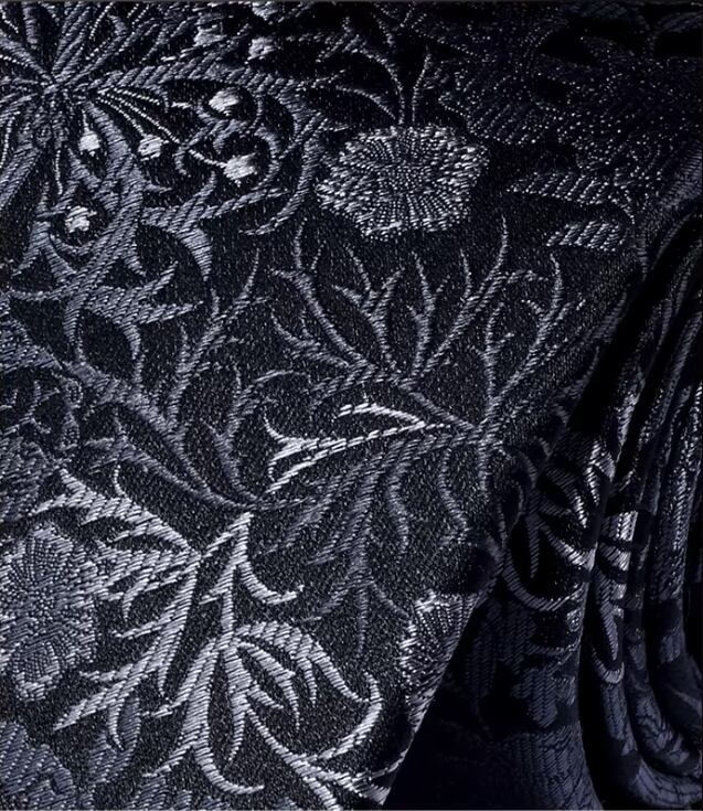 ・100%シルクを使用しており、滑らかな手触りと光沢が特徴です。高級感を感じさせる生地は、長時間の着用でも快適さを提供します。