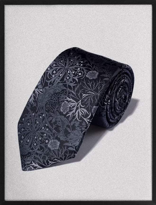 ・フォレスト柄の繊細なプリントが施されており、一目で印象的なアクセントに。シンプルながらも存在感のあるスタイルは、さまざまなシャツやスーツとの相性が抜群です。