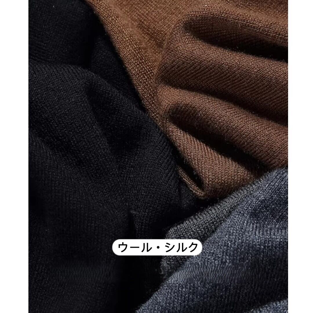 ・ウール10.5%、テンセル21.3%、シルク4.1%、アクリル64.1%を使用しており、心地よい肌触りと優れた保温性をお楽しみいただけます。重ね着でも快適にお過ごし頂けます。