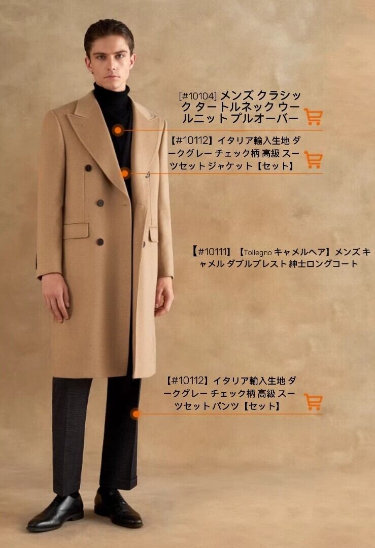 商品名:【#10111】【Tollegno キャメルヘア】メンズ キャメル ダブルブレスト 紳士ロングコート