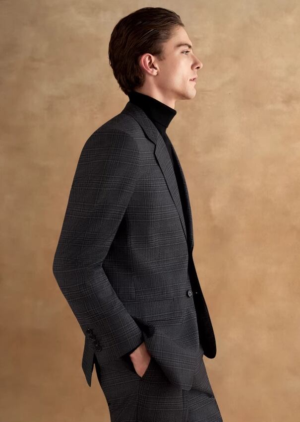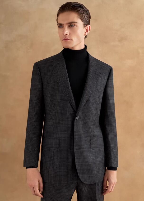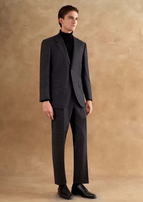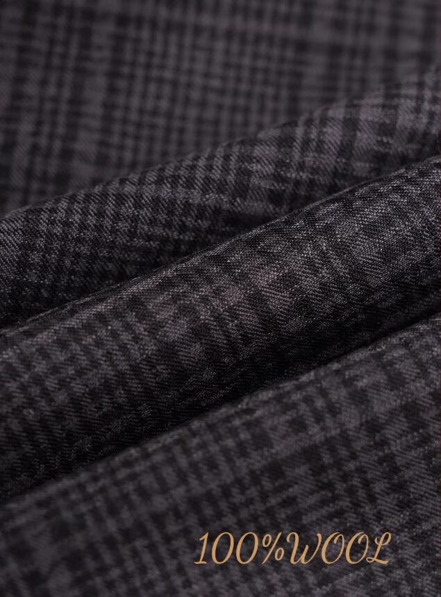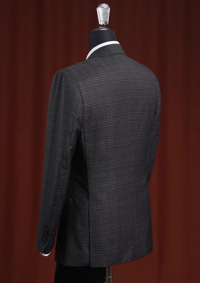 ダークグレーのチェック柄高級スーツセットにはCerruti 1881 イタリア輸入ウール生地を採用し、クラシックなダークグレーのチェック柄が奥行きのあるレイヤー感を表現しています。 ウール特有の自然なドレープ感とハリがあり、チェックのパターンは規則正しくも柔らかな印象で、落ち着きのあるヴィンテージかつ紳士的なビジュアル効果を演出します。 全体的なカッティングは体にフィットしており、シャツやネクタイと合わせることで、控えめながらもエレガントな気品を放つことができます。