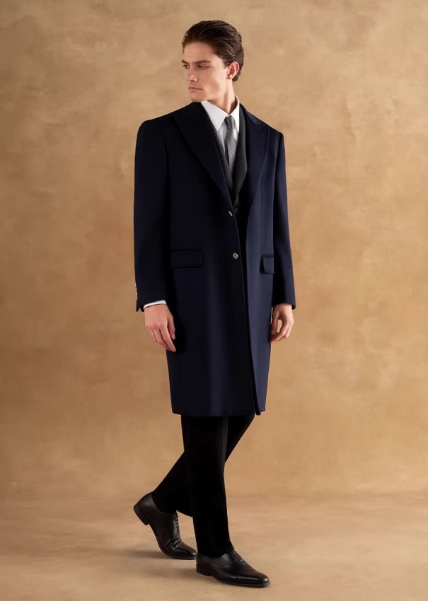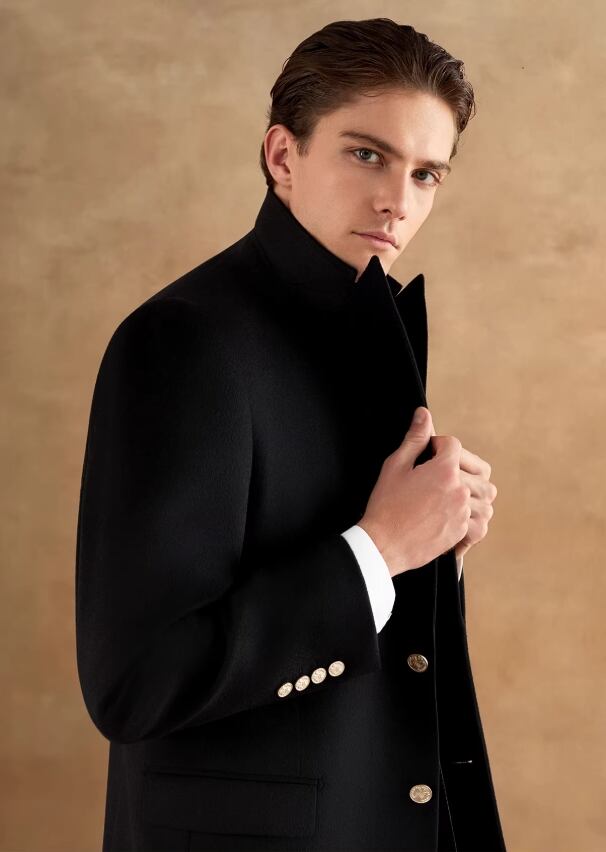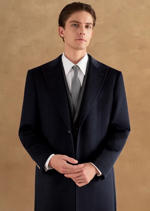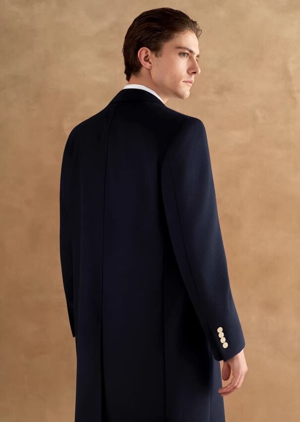 クラシックなチェスターコートをベースに、ピークドラペルとカシミヤ・ウール混紡生地を組み合わせ、質感とスタイルを共存させました。 ネイビーは落ち着きがあり内に秘めた強さを、ブラックはクラシックで万能であり、成熟したエレガントな格調を軽やかに演じます。 480Gの高目付けにより、快適な保温性と、品格と温度の両立を実現しました。