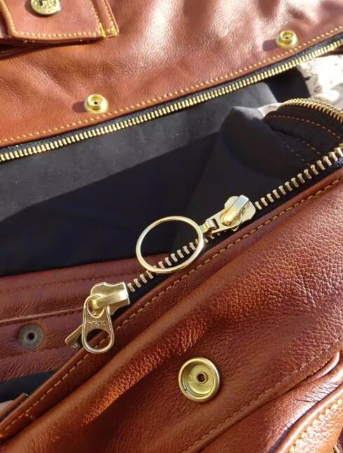 【メインファスナー】: 日本輸入 YKK製 ゴールド(ダブルジップ仕様)