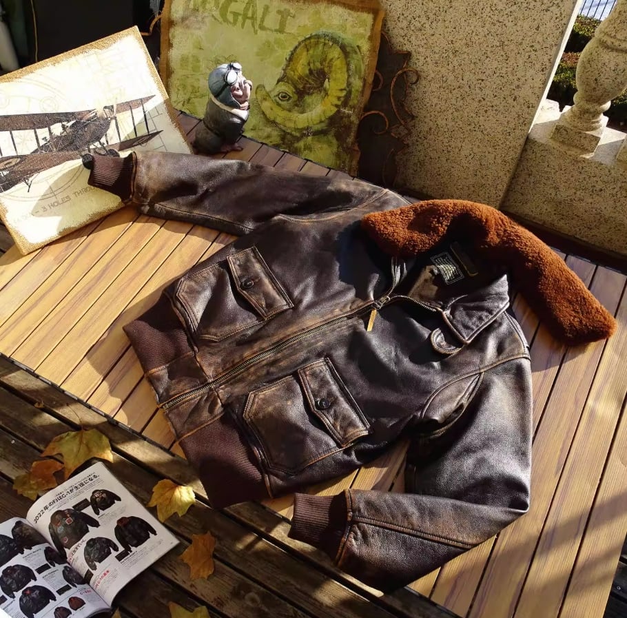 【#10153】G1 空軍フライトジャケット 取り外し可能襟 茶芯カウハイド 本革レザージャケット