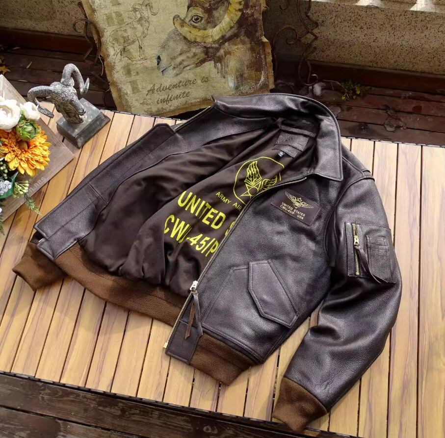 商品名:【#10161-A】トップガンCWU-45/P風 アメリカ産牛革 空軍フライトジャケット 茶