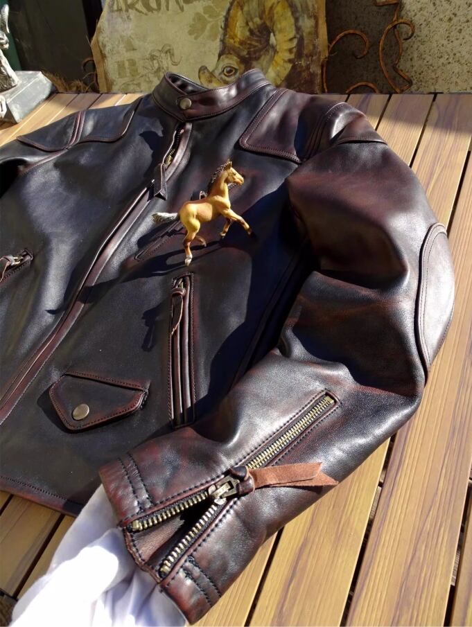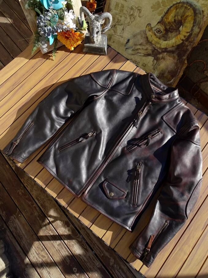 【#10163】ヴェノム イタリア産 茶芯馬革 ヴィンテージ加工 レザージャケット