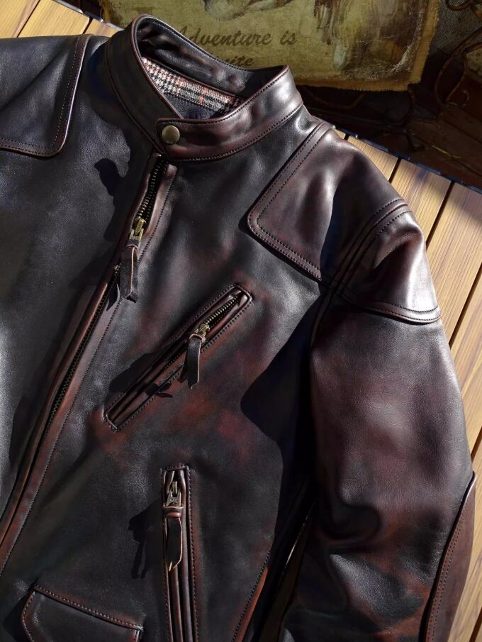 商品名:【#10163】ヴェノム イタリア産 茶芯馬革 ヴィンテージ加工 レザージャケット