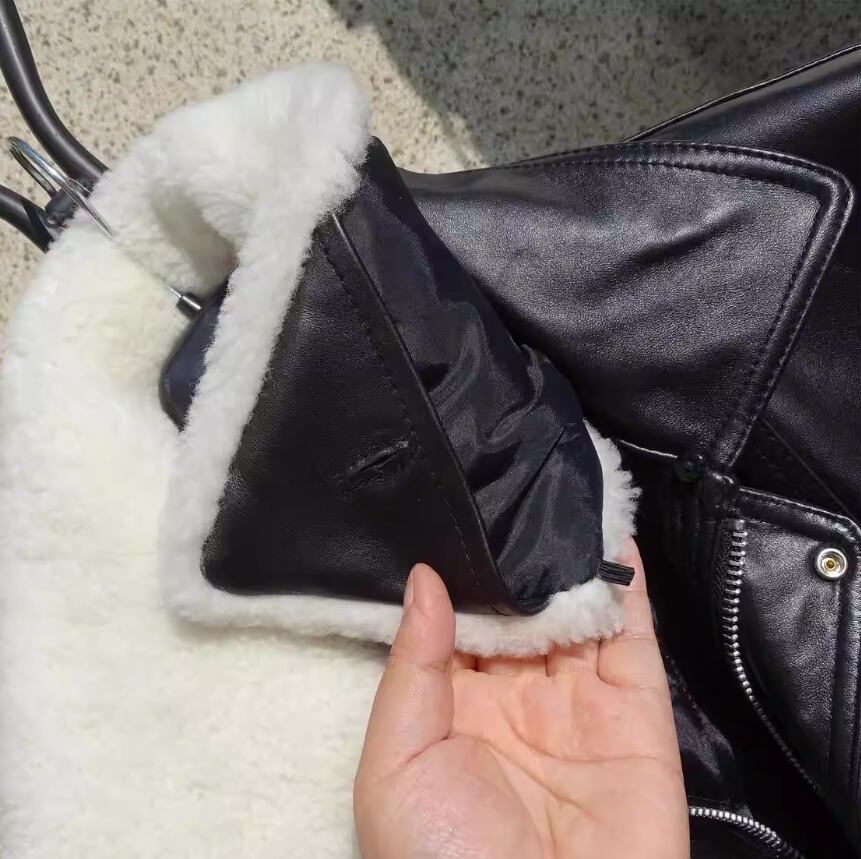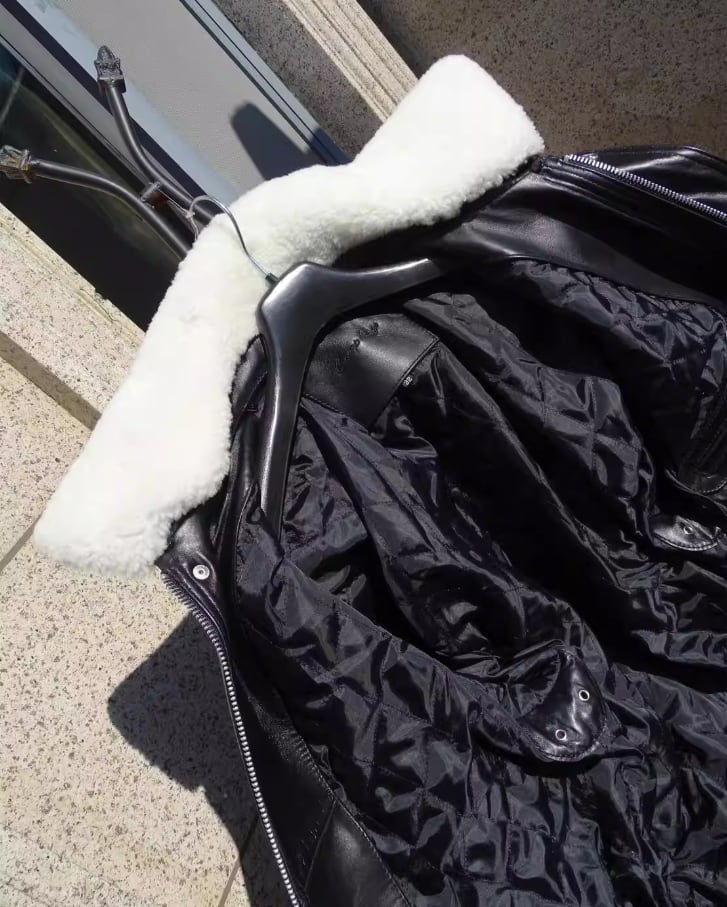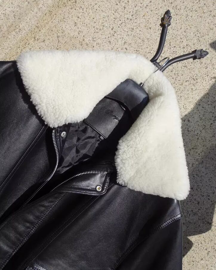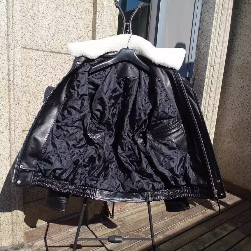 【#10173】取り外し可能な羊毛襟 男女兼用 本革レザージャケット