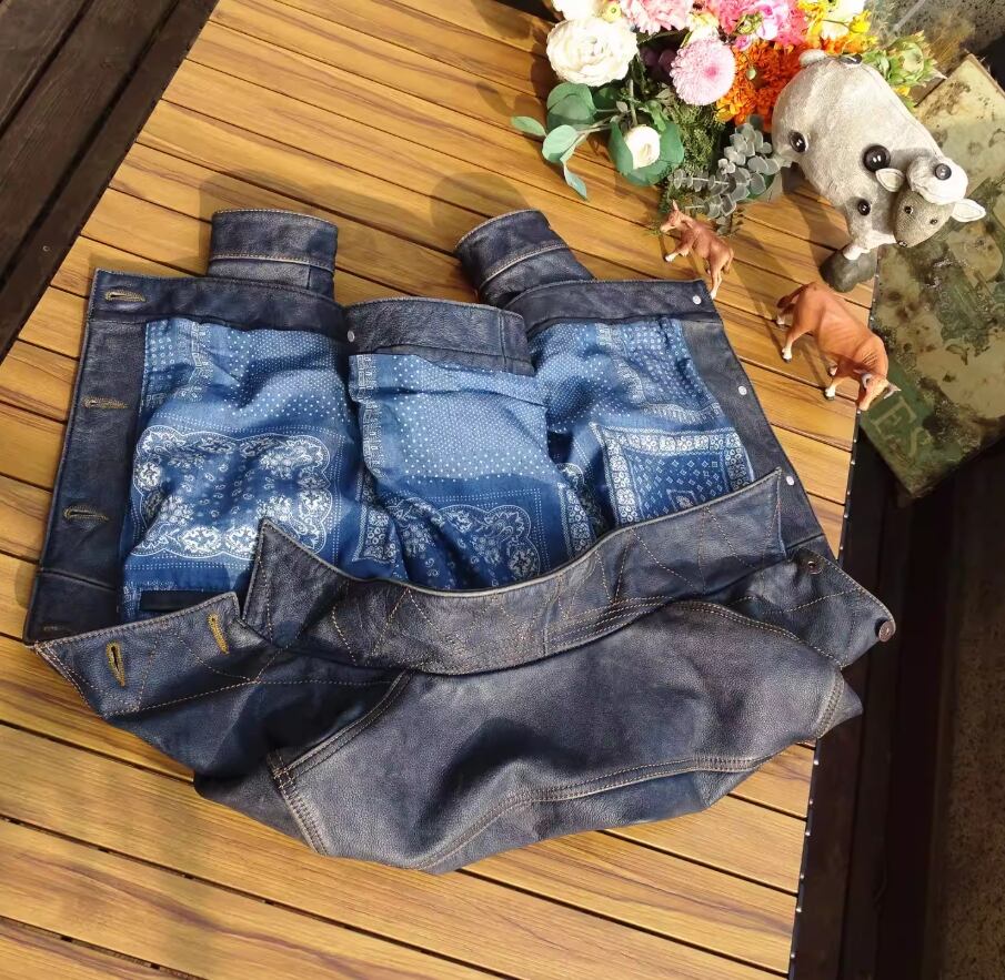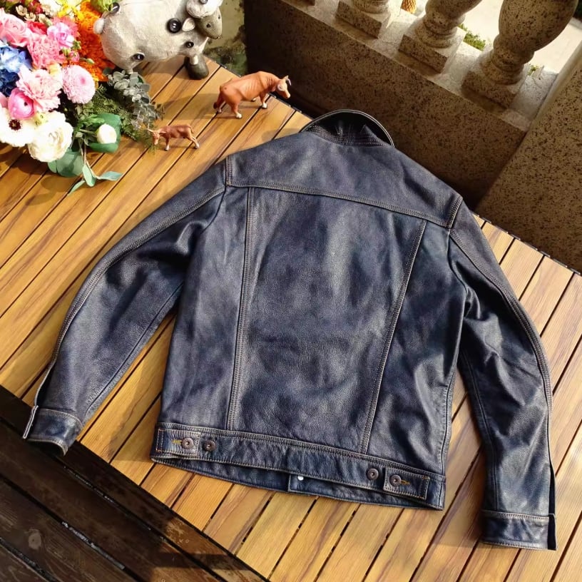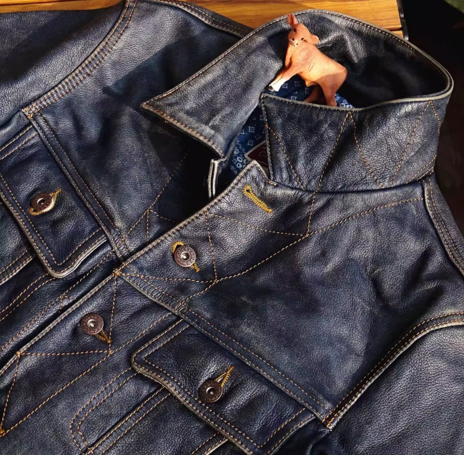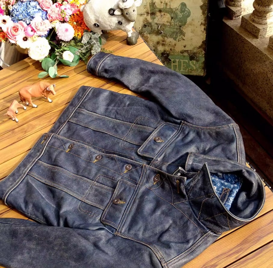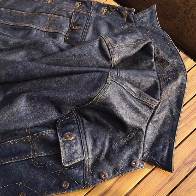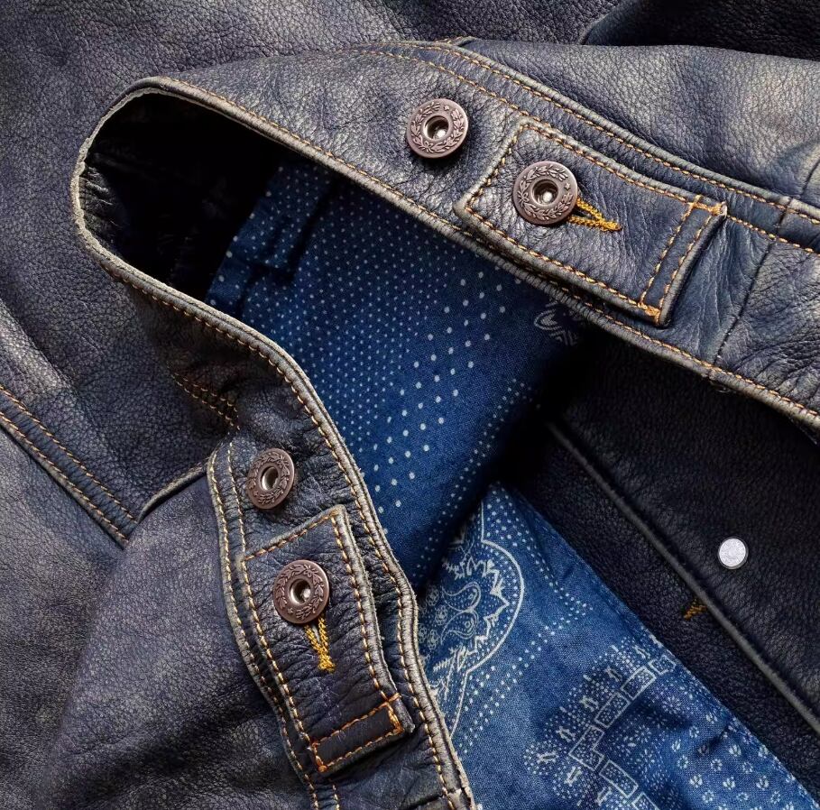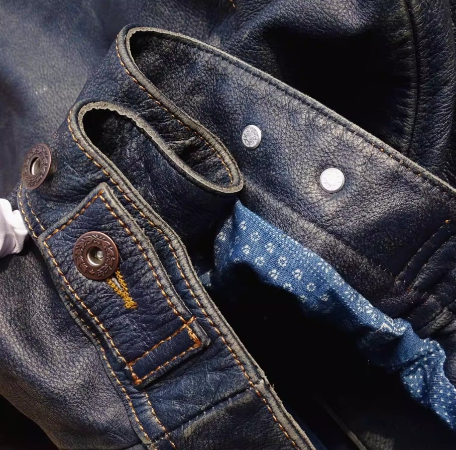 ご不明な点がございましたら、お気軽にお問い合わせください。ストームライダー 101 インディゴ藍染めの茶芯カーフ レザージャケットで、あなたのスタイルをさらに引き立ててください!