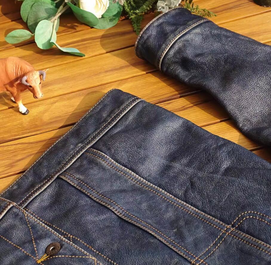 インディゴ藍染め・茶芯バングラデシュ産カーフスキン