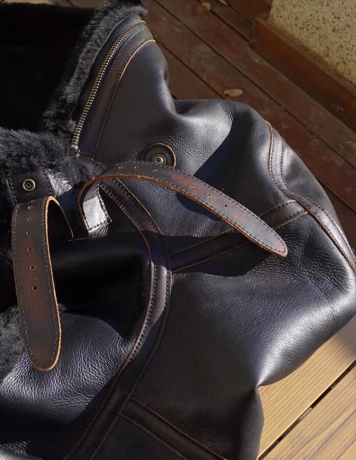 【#10180】アメリカンヴィンテージ加工 ムートン皮毛一体 レザージャケット