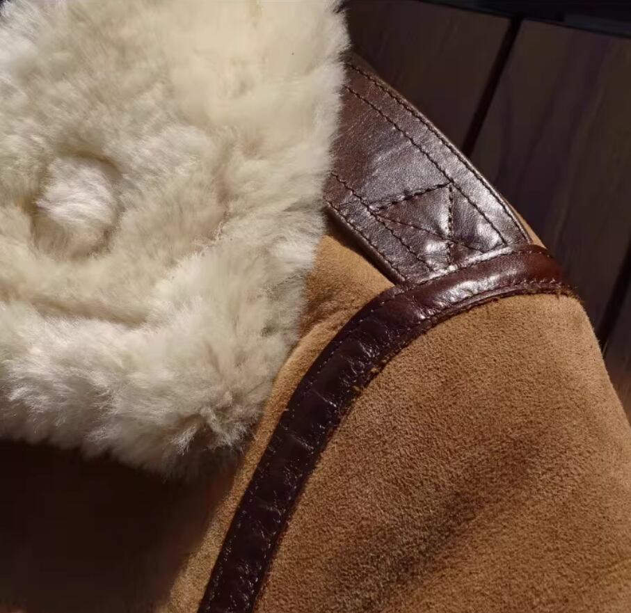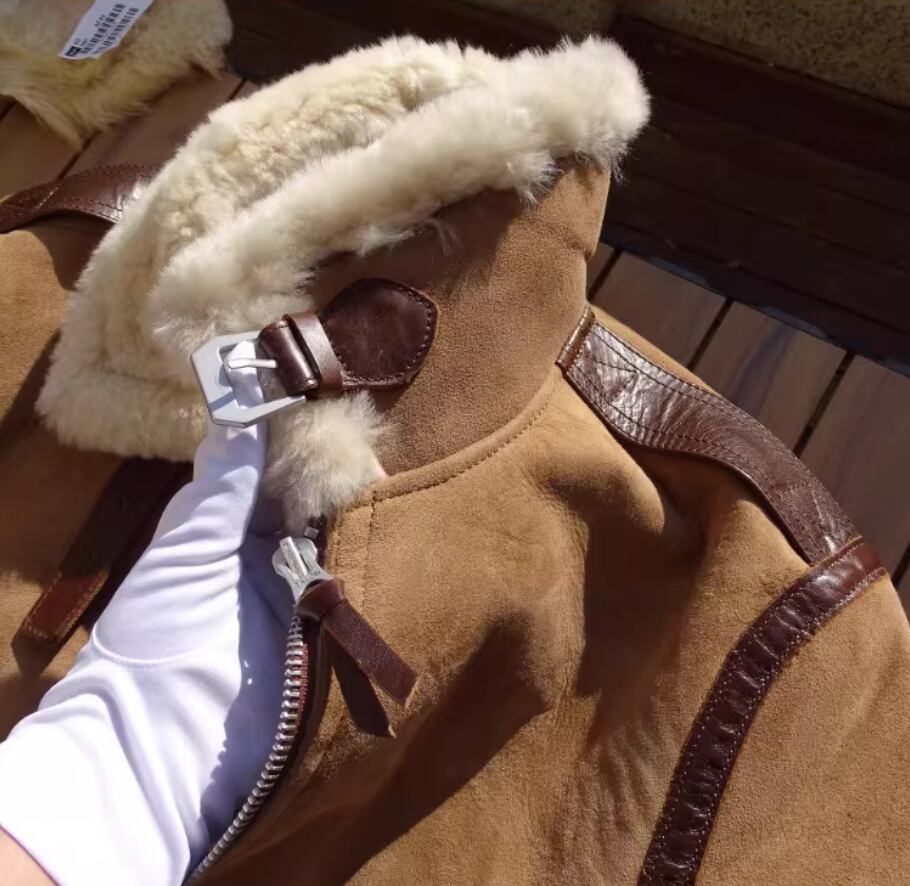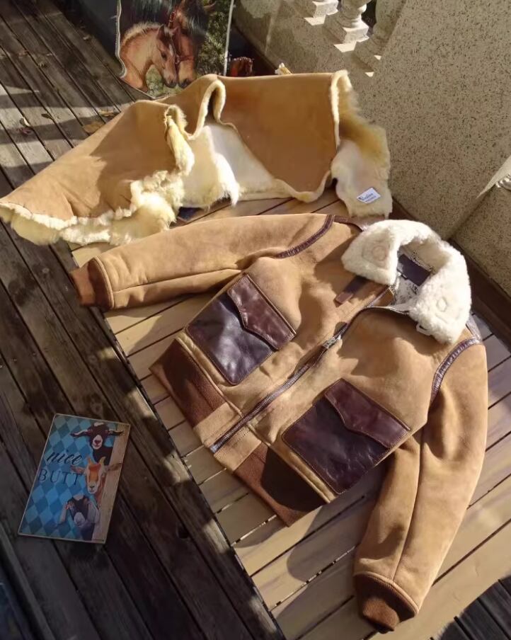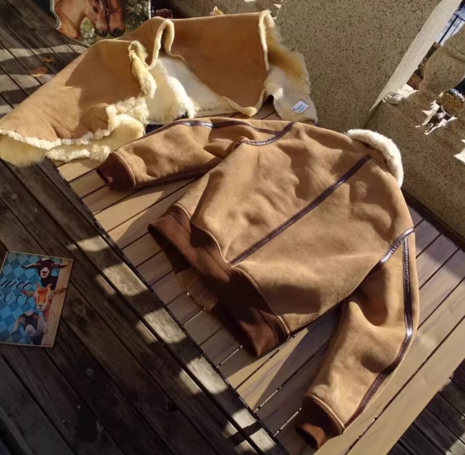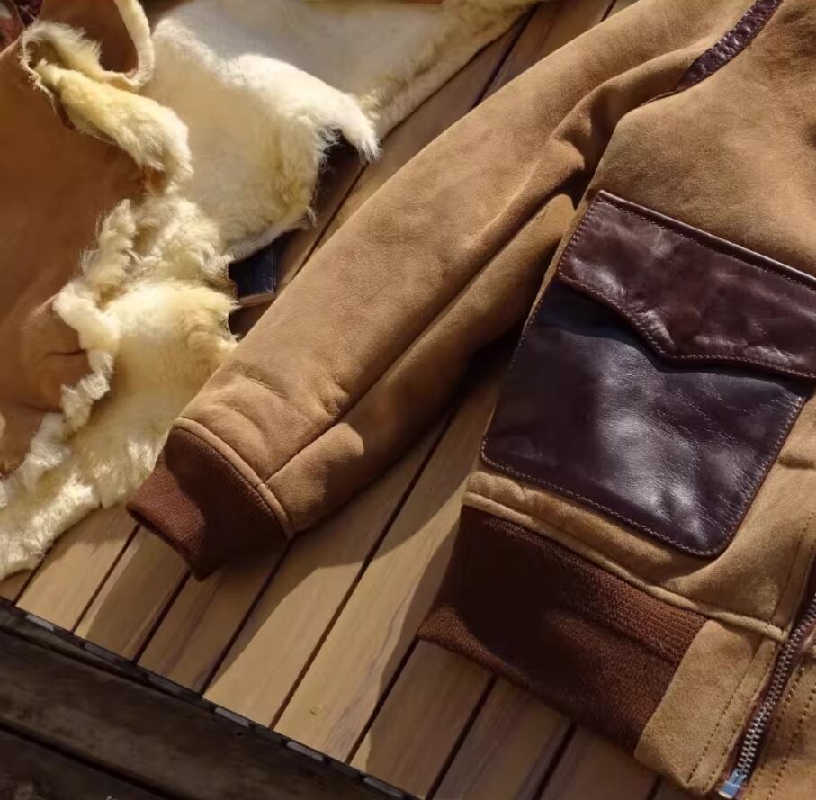 ・実際の商品は、色味やデザインが若干異なる場合がございますので、予めご了承ください。ぜひ実物を手に取って、その質感と魅力をご体感ください。このオーストラリア産無塗層・皮毛一体ムートン A2フライトジャケットで、あなたのスタイルを特別なものにしてください!