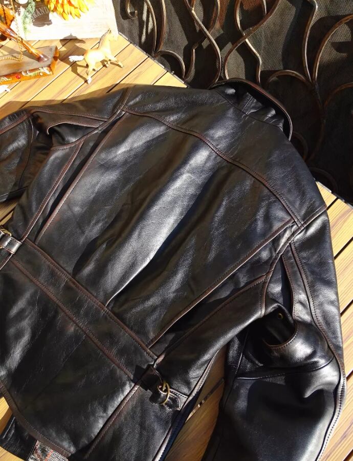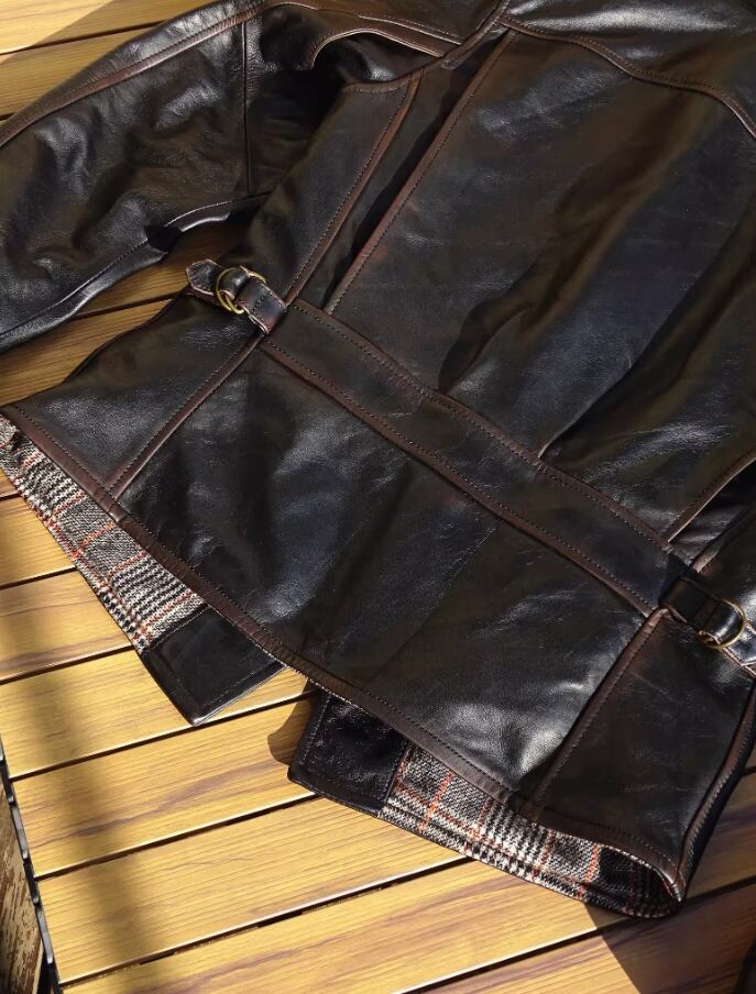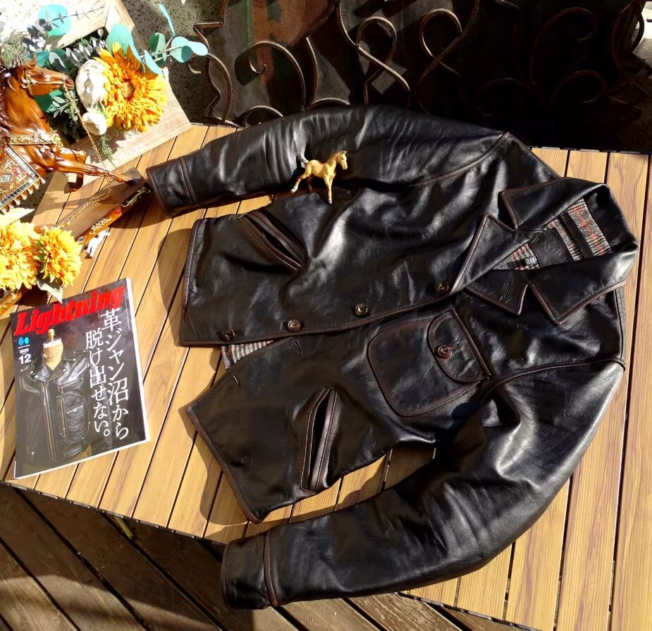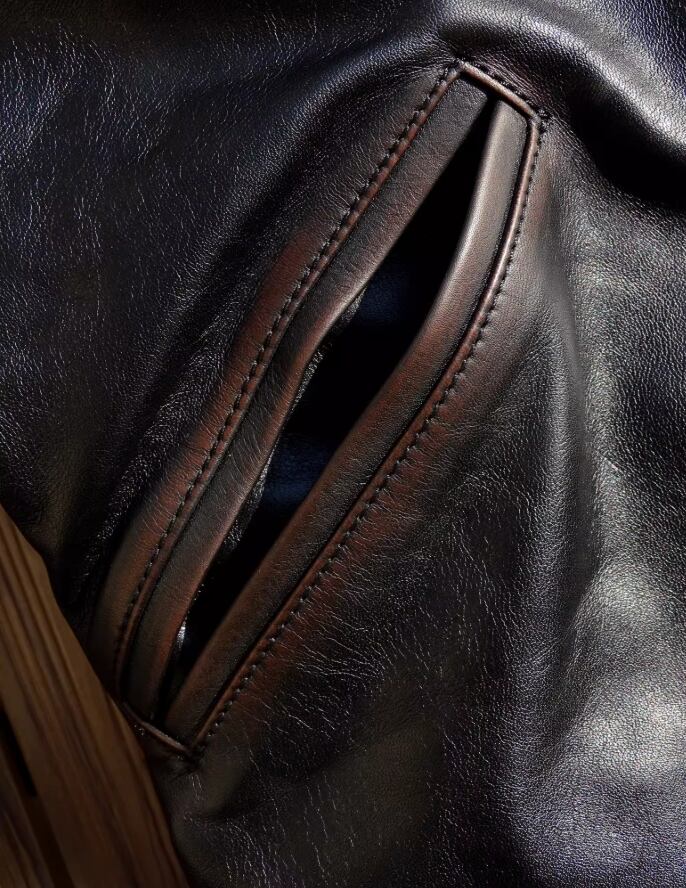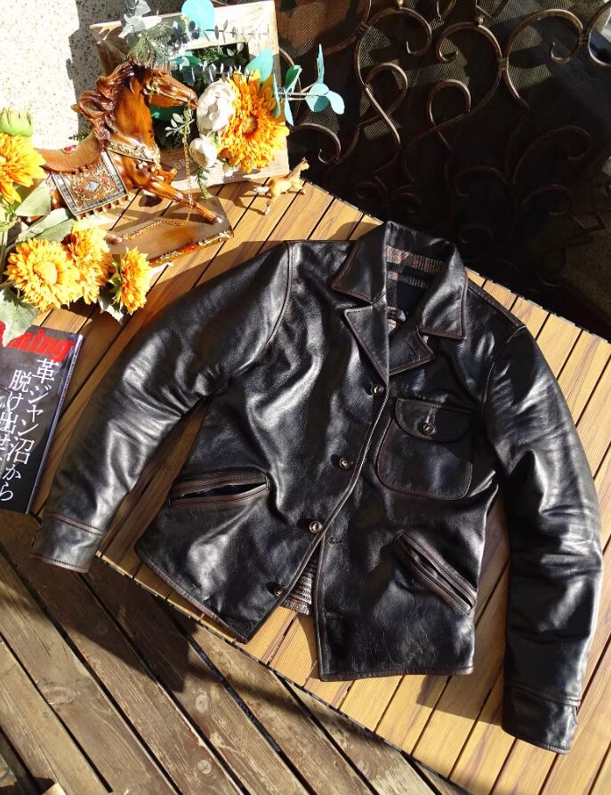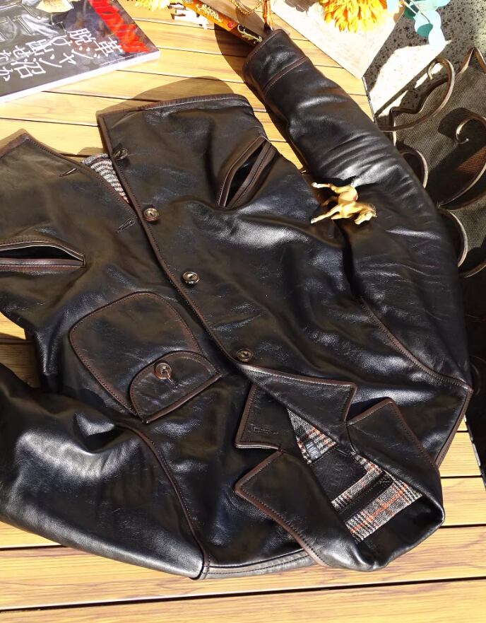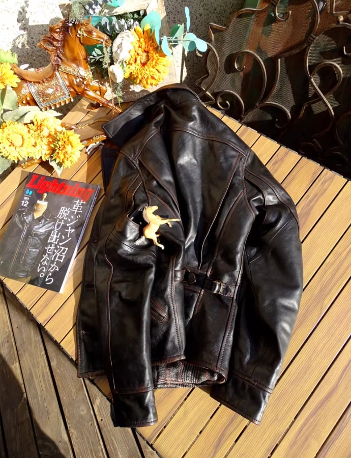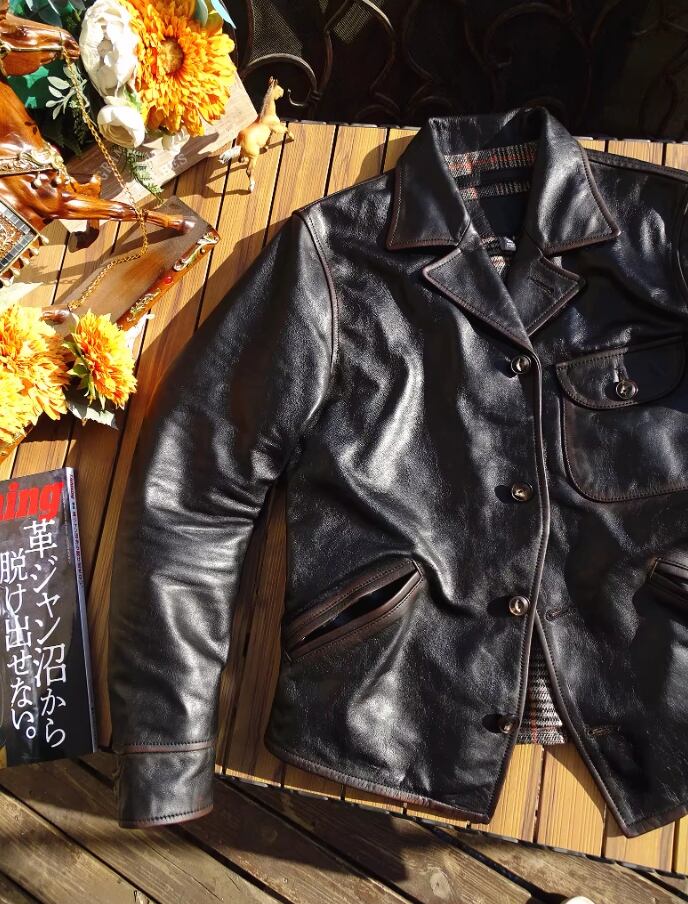 アメリカンヴィンテージの茶芯ポニーハイドを使用したレザージャケット: 柔らかな質感と洗練されたデザインが融合した一着です。シンプルながらも存在感があり、カジュアルからフォーマルまで幅広く活躍するアイテムです。