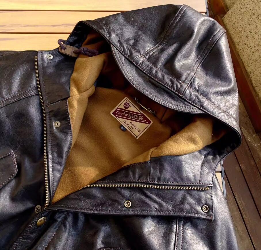 商品名:【#10191】フーデッド・ハンティングジャケット 日本製カーフスキン