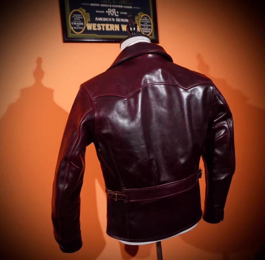 1930s復刻モデル 日本産茶芯馬革 ワックス仕上げ レザージャケットは、クラシックなスタイルを現代風にアレンジした逸品です。高品質な茶芯馬革を使用し、独特の風合いと耐久性を兼ね備えています。このジャケットは、カジュアルな日常使いから特別なイベントまで、さまざまなシーンで活躍すること間違いなしです。スタイルの完成度を高める、機能性とデザイン性に優れた一着です。
