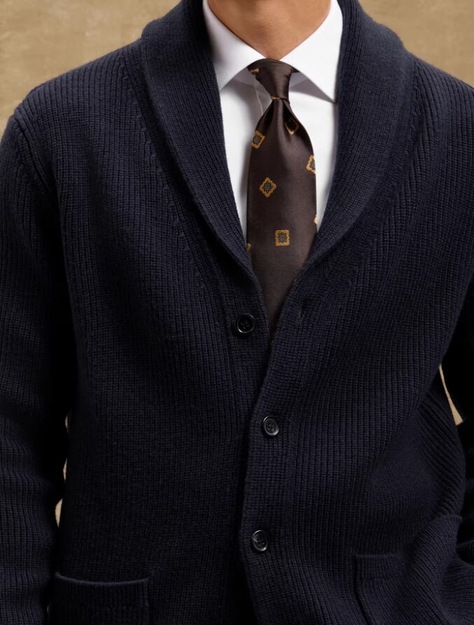 【#10212】純ウール ショールカラー ニットカーディガン ネイビー