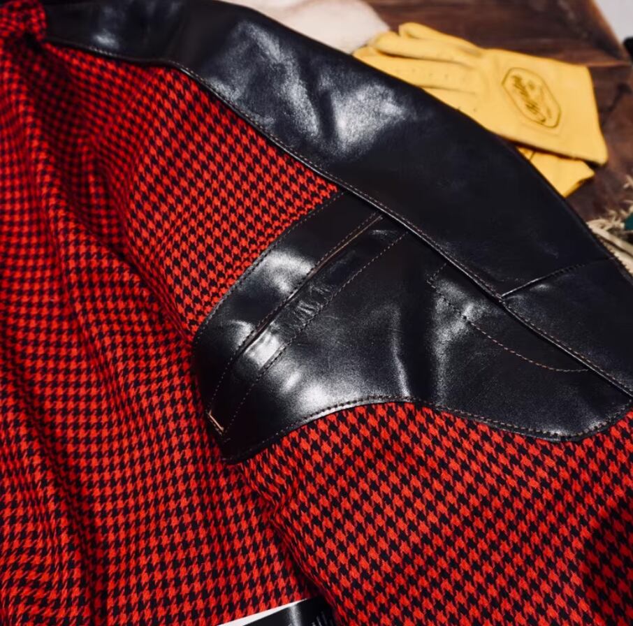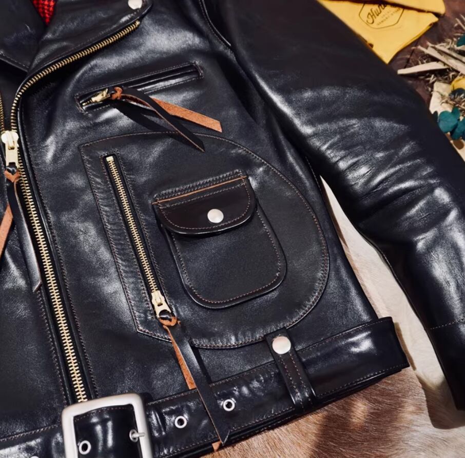 馬革の特性: 牛革に比べて繊維が緻密で、独特の鈍い光沢感(テカリ)があります。また、着用者の動きを記憶する「メモリー効果」が強く、自分だけの一着に育てる楽しみがより強い素材です。