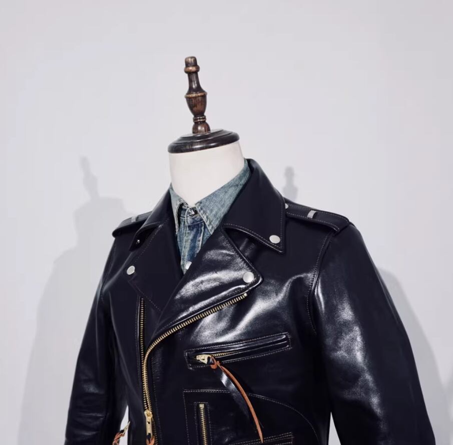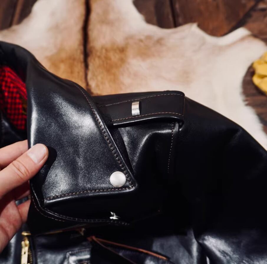 完全復刻版BUCO J-24モデルのライダースジャケットは、モーターサイクル文化を象徴するデザインに仕上がっており、迫力とエレガンスを兼ね備えたアイテムです!選び抜かれた上質な茶芯ホースハイドを使用しており、どんなシーンでもスタイルを際立たせる一着です。