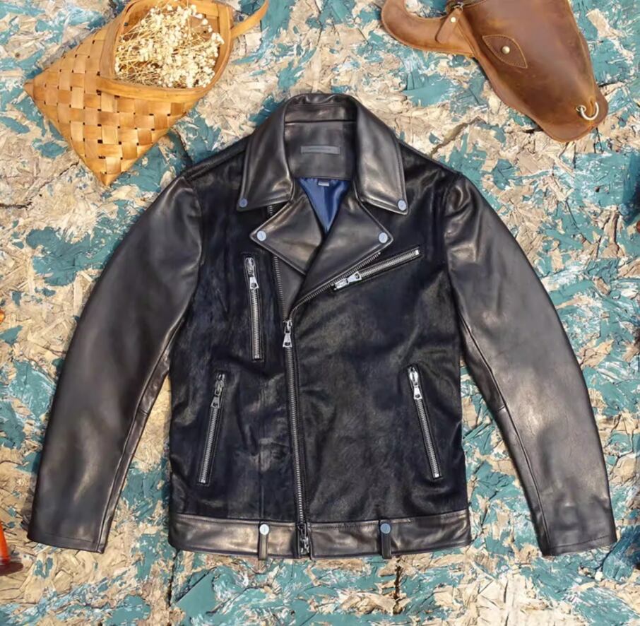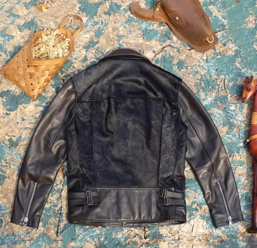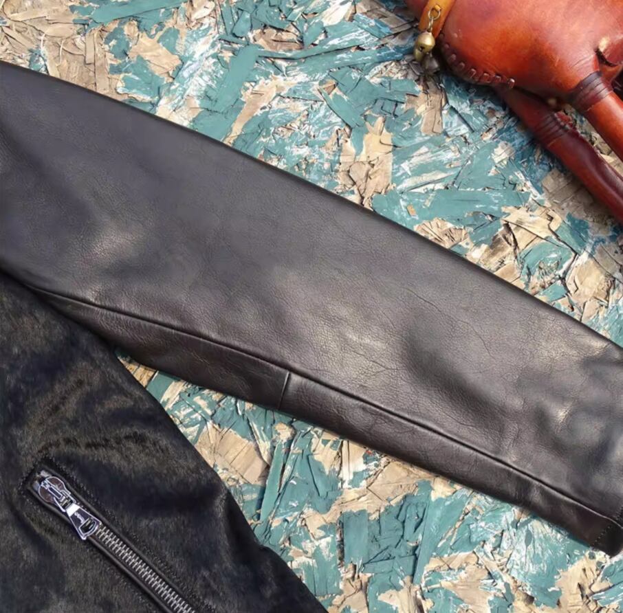 商品名:【#10218】インポート・オイルワックス牛革 × ホースムートン ライダースジャケット