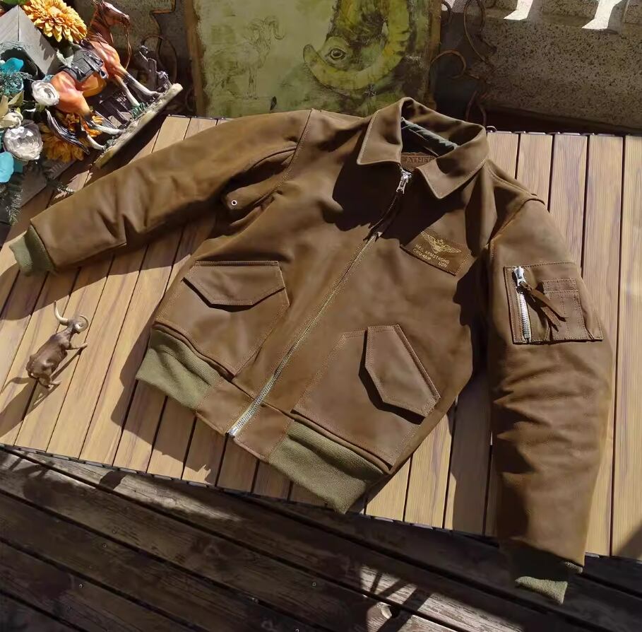 CWU-45Pアメリカン・ヌバックカウハイドフライトレザージャケットは、上質なヌバックカウハイドを使用した洗練されたデザインが魅力のアイテムです!深みのあるカラーリングが、特別なシーンからカジュアルなコーディネートまで多彩に活躍し、あなたのスタイルを引き立てます。