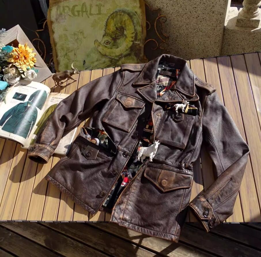 M43フィールドジャケットは、クラシックなミリタリーデザインに現代的なエイジング加工を施した一品です!深みのある茶色のカウハイドが、特別なシーンからカジュアルな日常まで、幅広くコーディネートを引き立て、あなたの個性を際立たせる上質なアイテムとなっています。