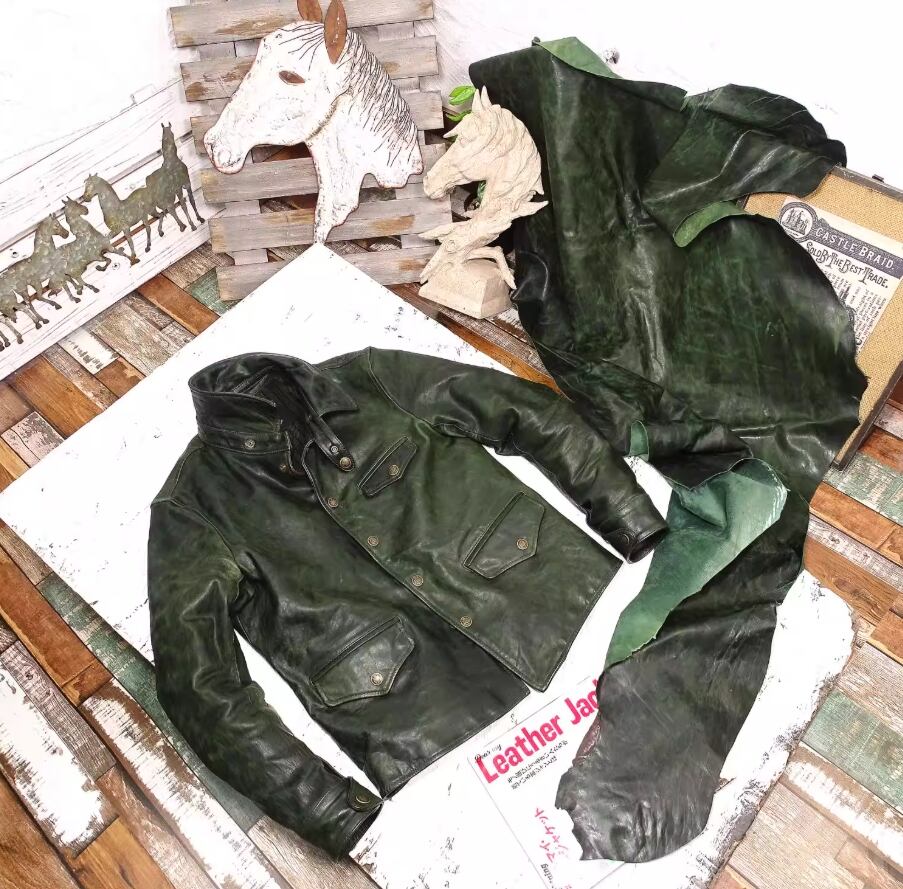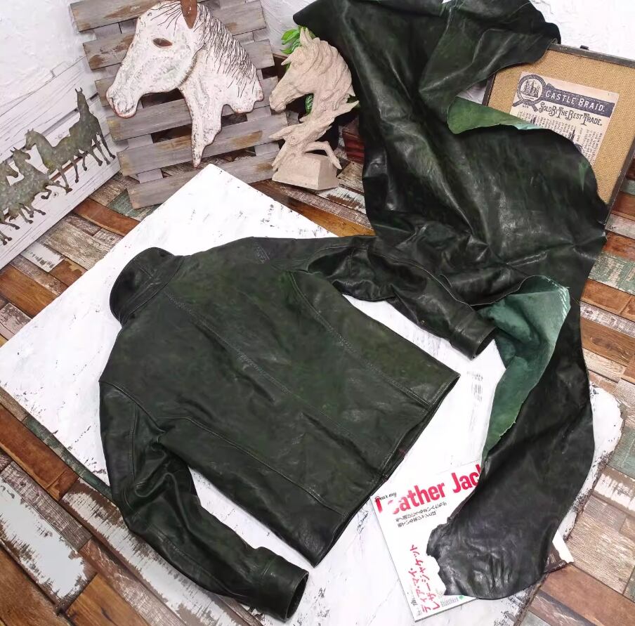【#10234】日本産ポニーハイド フルベジタブルタンニン モスグリーン・ワックスダイ レザージャケット