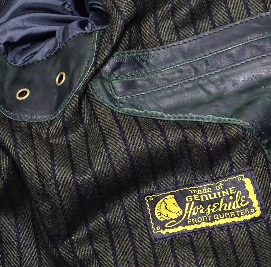 商品名:【#10234】日本産ホースハイド フルベジタブルタンニン 茶芯 モスグリーン・ワックスダイ レザージャケット