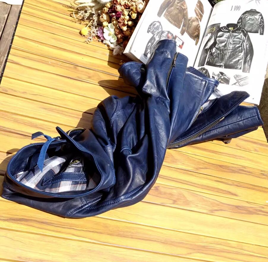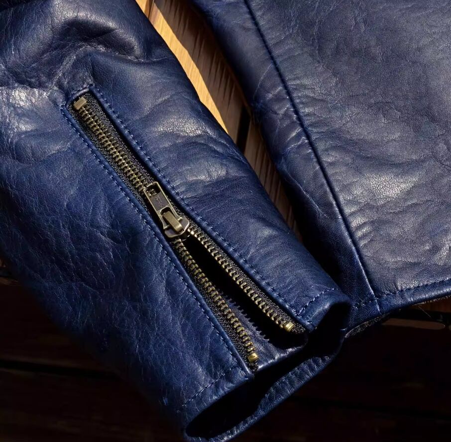 ・通常、注文確認後10営業日以内に発送いたします。お届け先や状況により前後する場合がありますので、ご了承ください。このインディゴ染め 馬革 J-100スタイル シングルライダースが、あなたのスタイルに新たな魅力を加えることを心より願っています!
