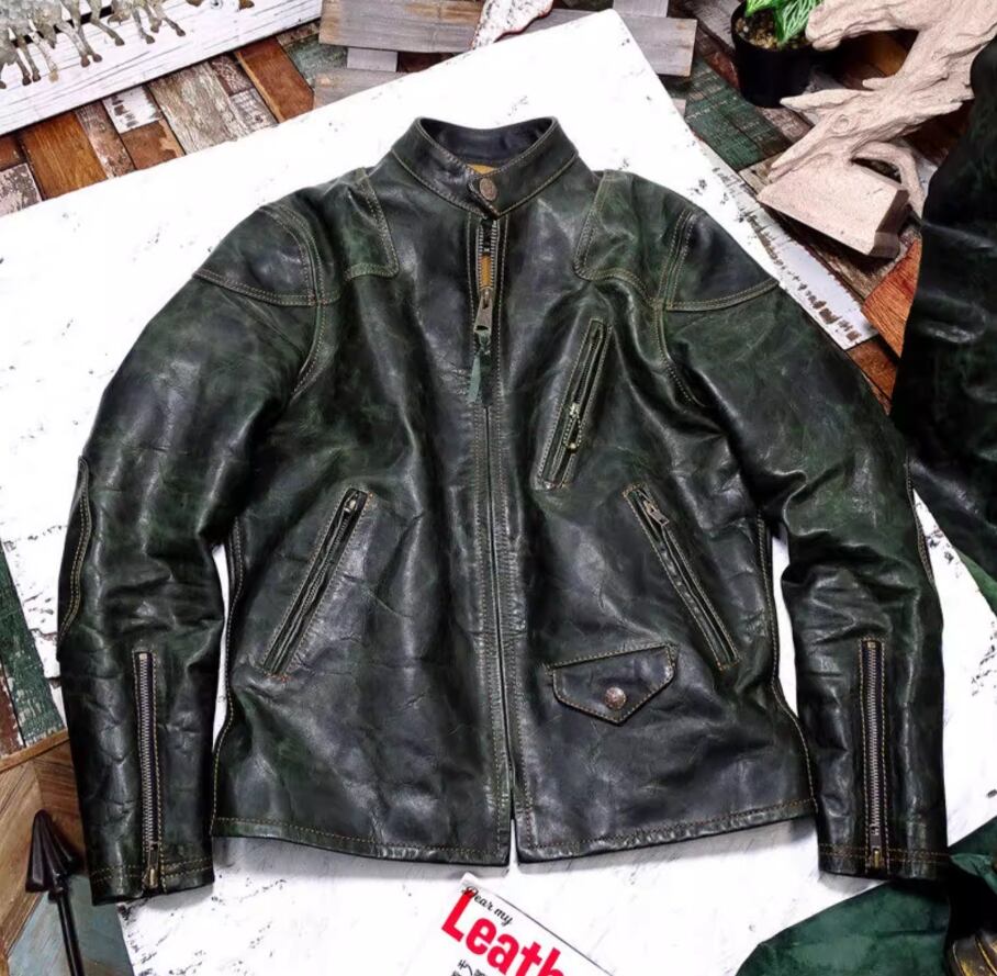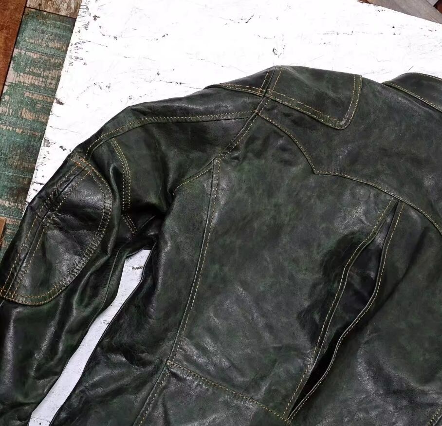 変幻自在なエイジング: オイルが浸透し、関節部分に刻まれる「ハチノス」や、経年による色の変化は唯一無二。着れば着るほど、奥深いヴィンテージグリーンへと進化します。