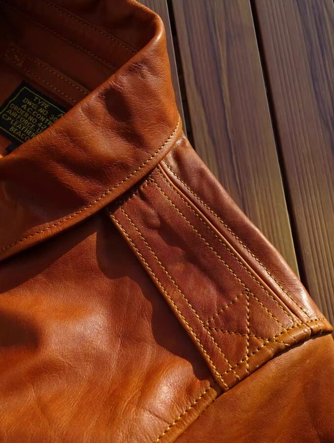 このジャケットは、単に「古いものを再現した」だけではありません。蜜蝋を用いることで、革の保護性能を高めつつ、着込むほどに深い飴色へと変化する「究極の育成」を目的として作られました。手に取った瞬間に感じる、蜜蝋特有のしなやかな重みと香りは、まさに贅の極みです。
