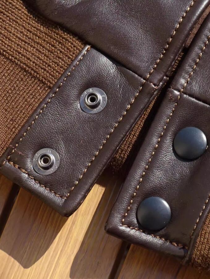 ボタンフロント仕様: A-1最大の特徴であるボタン留めのフロントデザイン。ジッパータイプにはない、クラシックで温かみのある表情が魅力です。