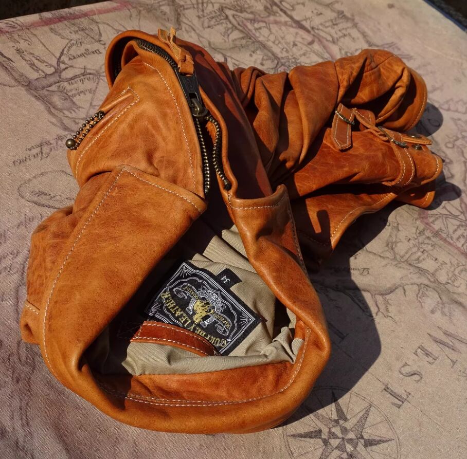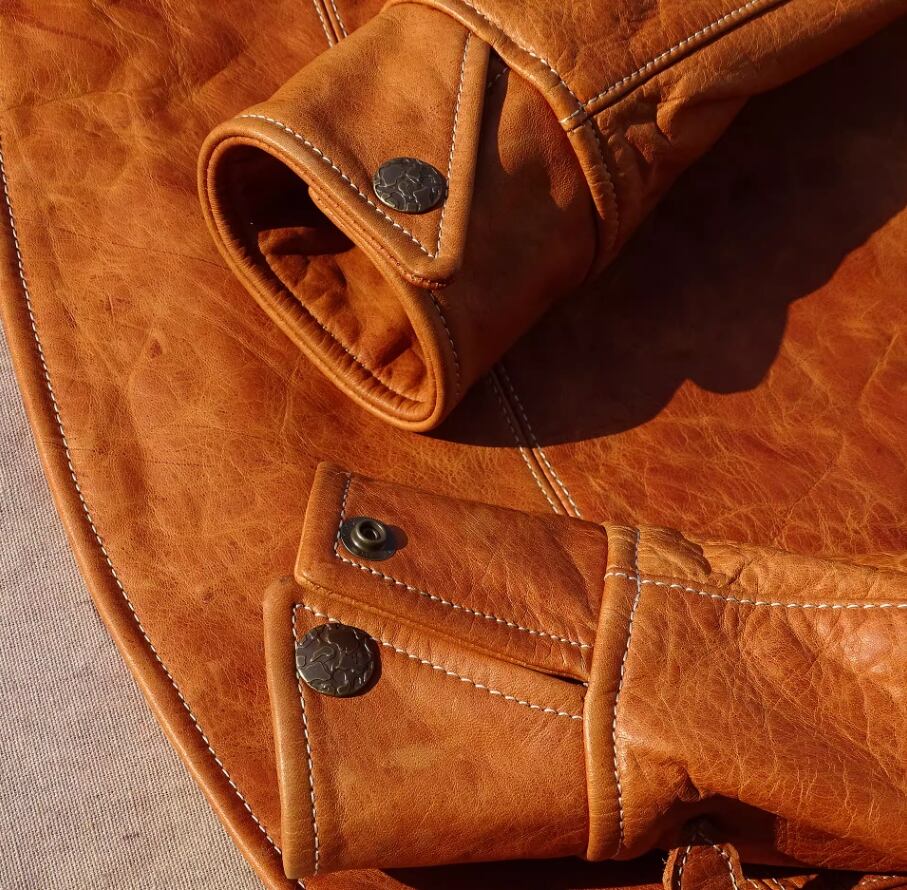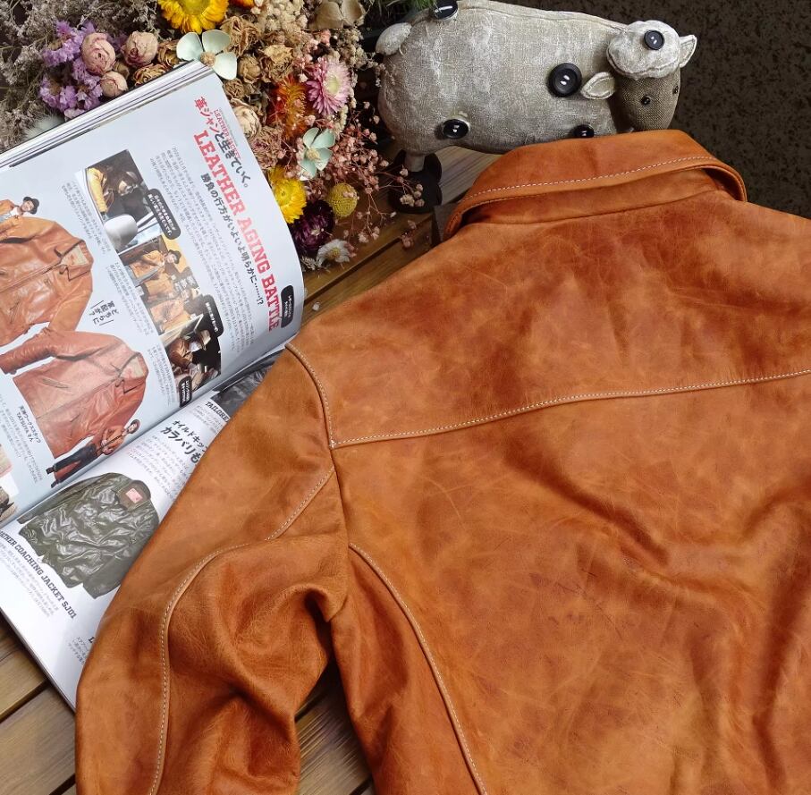 劇的なエイジング: 非常に素朴でナチュラルな仕上げのため、着る人の動きに合わせて深いシワが刻まれ、徐々に飴色のような深い輝きを放つようになります。
