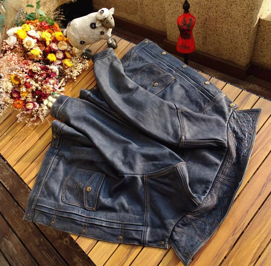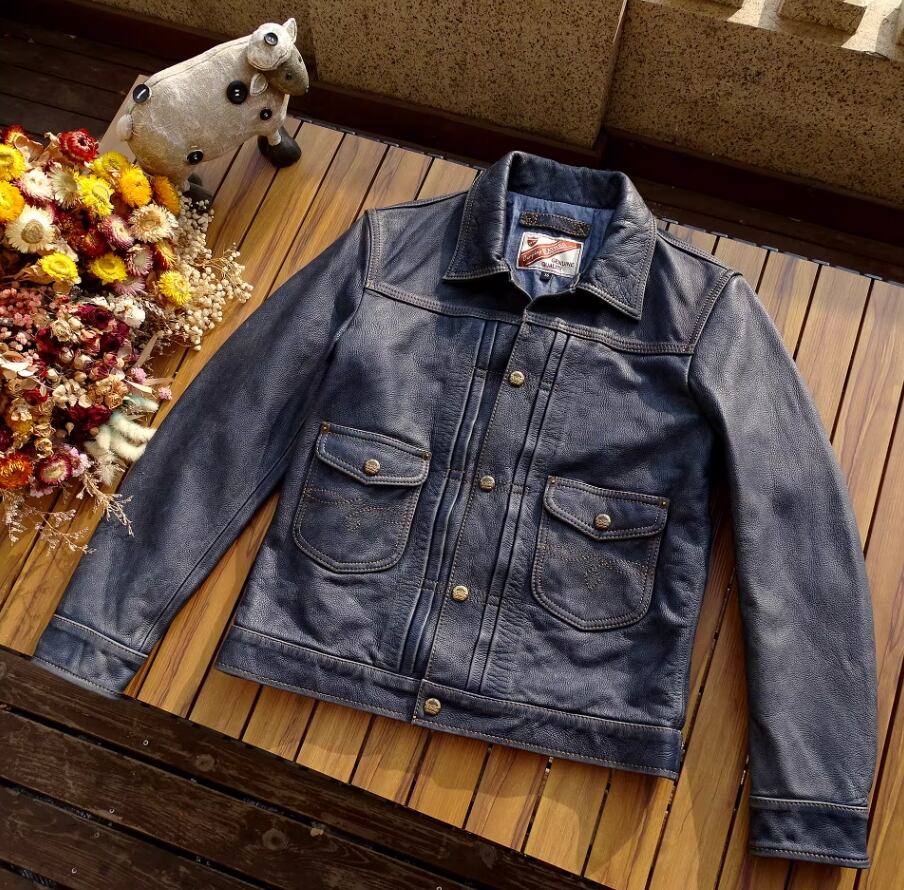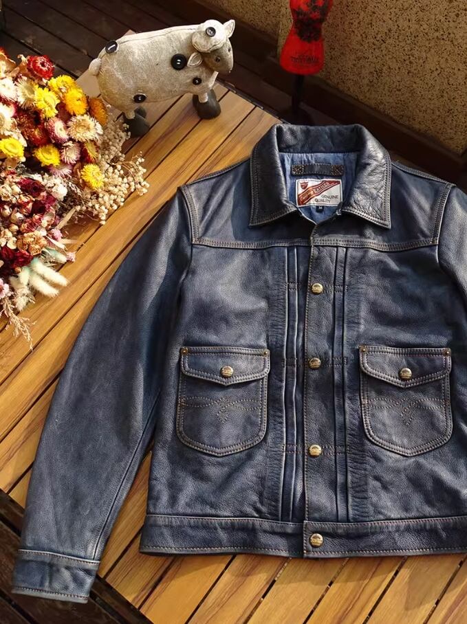 【#10251】【極柔・藍染茶芯】ストーンウォッシュ加工 ベンガルカーフスキン レザージャケット
