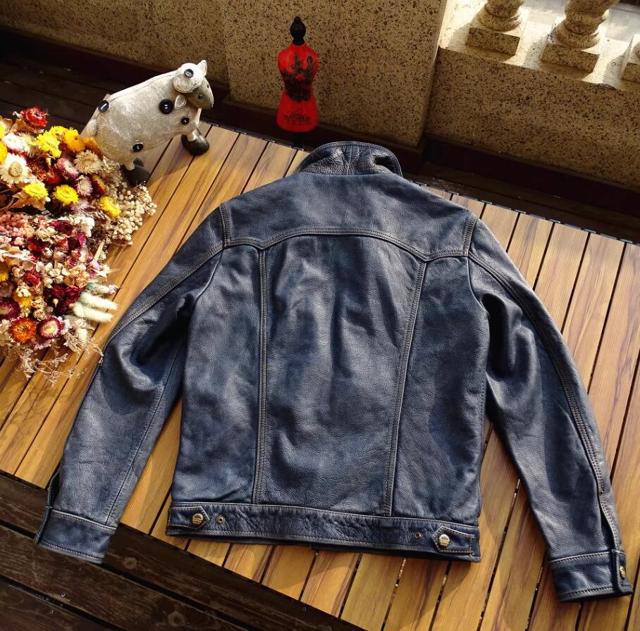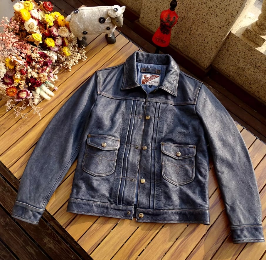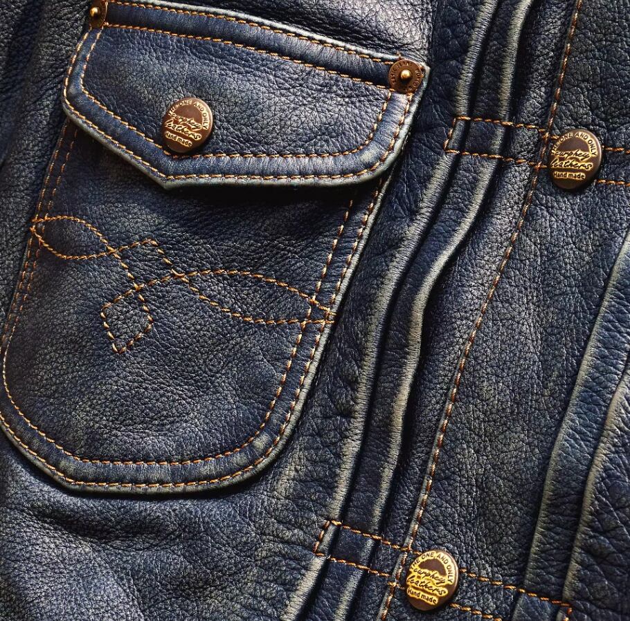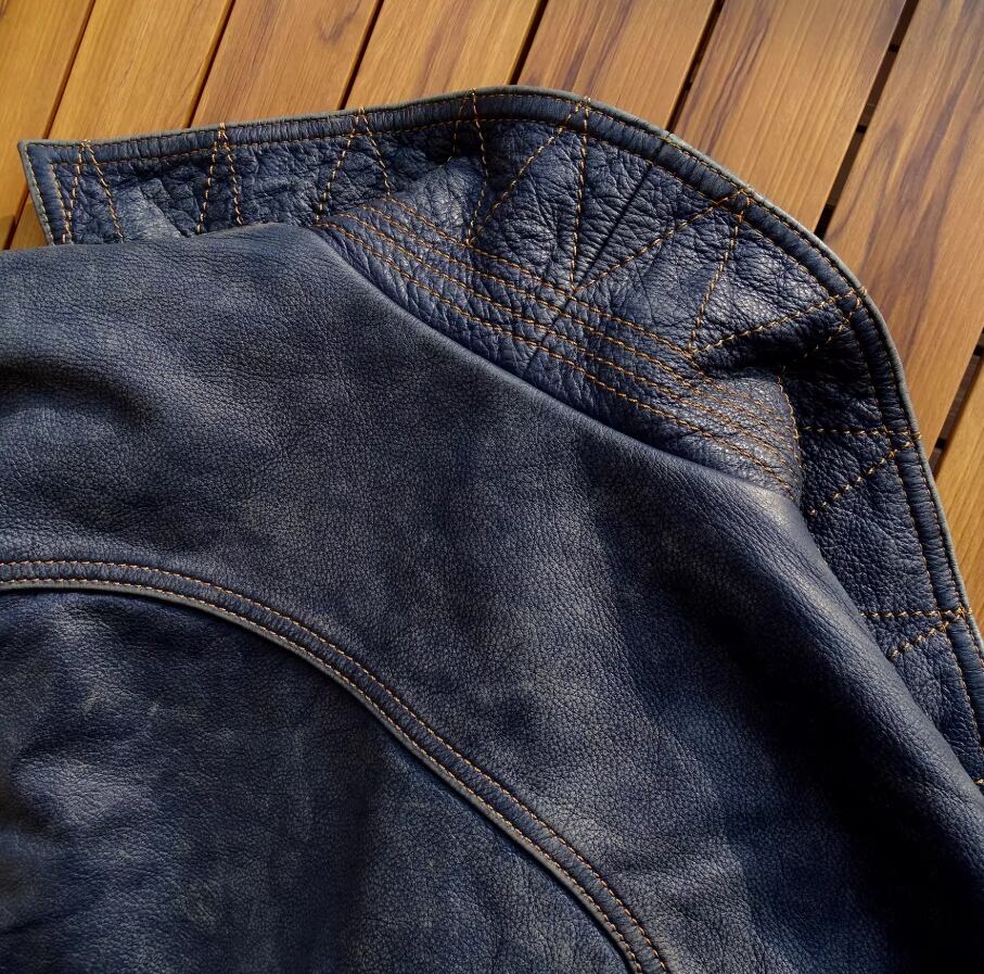商品名:【#10251】【極柔・藍染茶芯】ストーンウォッシュ加工 ベンガルカーフスキン レザージャケット
