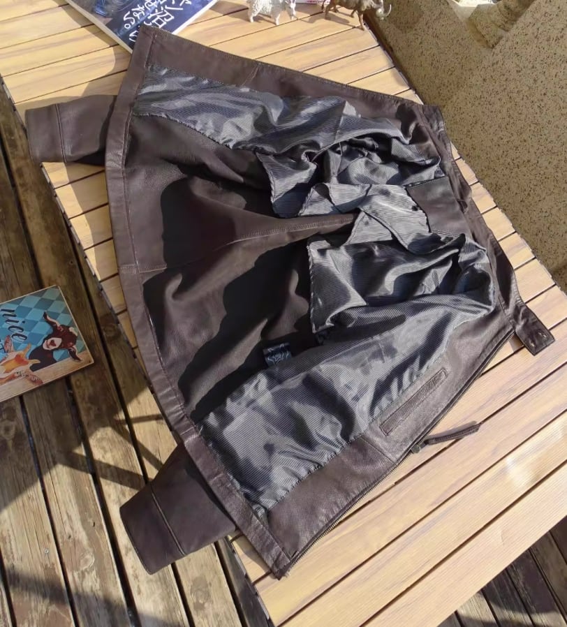 柔らかくしなやか: 特殊加工を施しながらも、フランス産羊革本来のしっとりとした柔らかさを維持。着る人の動きに柔軟に寄り添います。