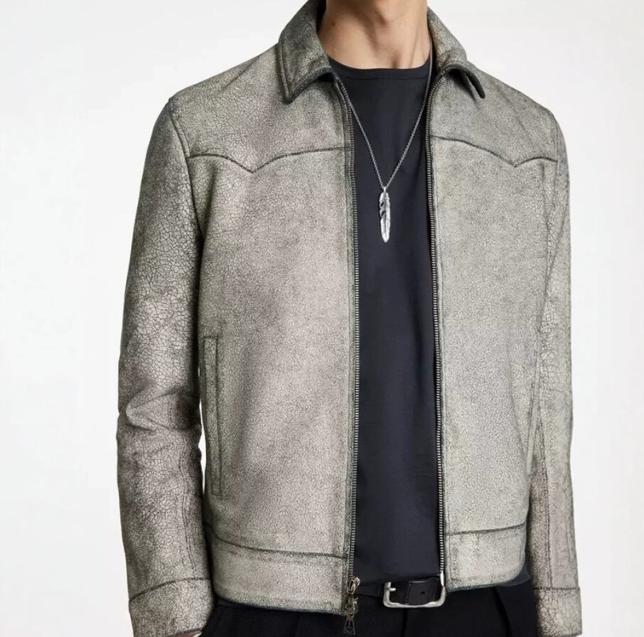 【#10268】イタリア最高峰技術クラック加工 インポート山羊革 白レザージャケット