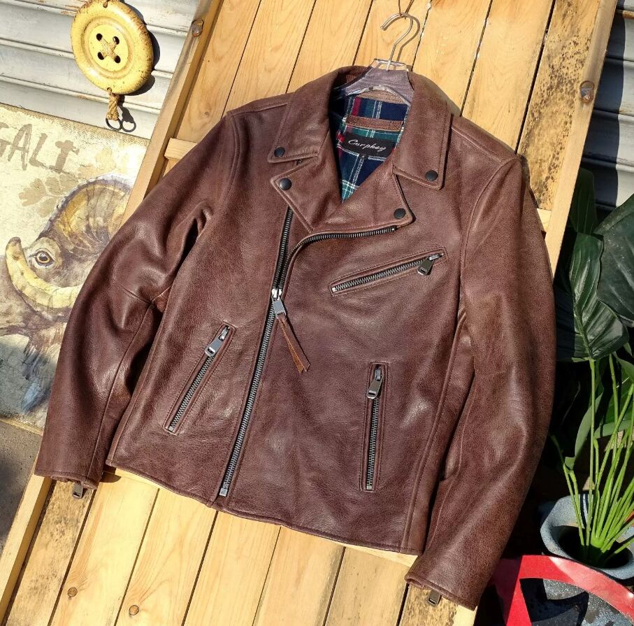 商品名:【#10271】イタリア製ミストワックス 極軟カウハイド 斜めジッパーライダース