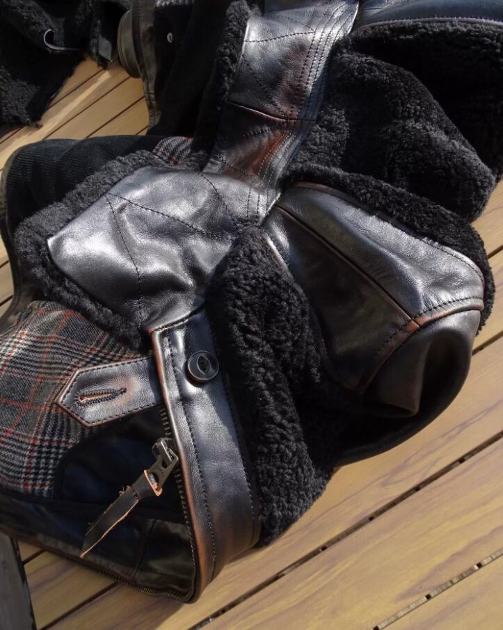 厚みのあるムートンと、堅牢なホースハイドを美しく縫い合わせるには、高度な熟練技術が不可欠です。20年以上の経験を持つ型師によるパターン設計と、日本の高強度シルク糸による縫製が、重厚ながらも動きやすい「究極の着心地」を実現しました。