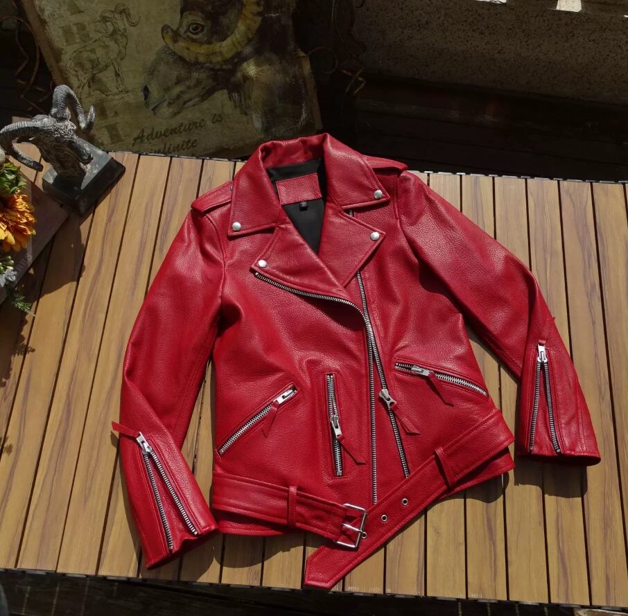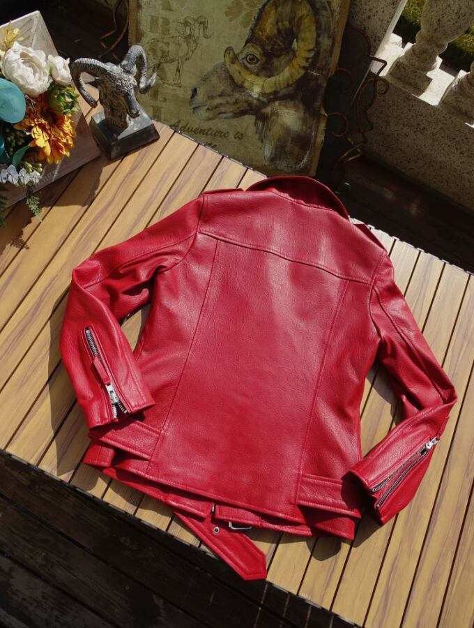 【#10287】レディース【高級感象紋】極軟インポートラムスキン・ベルト付きライダース