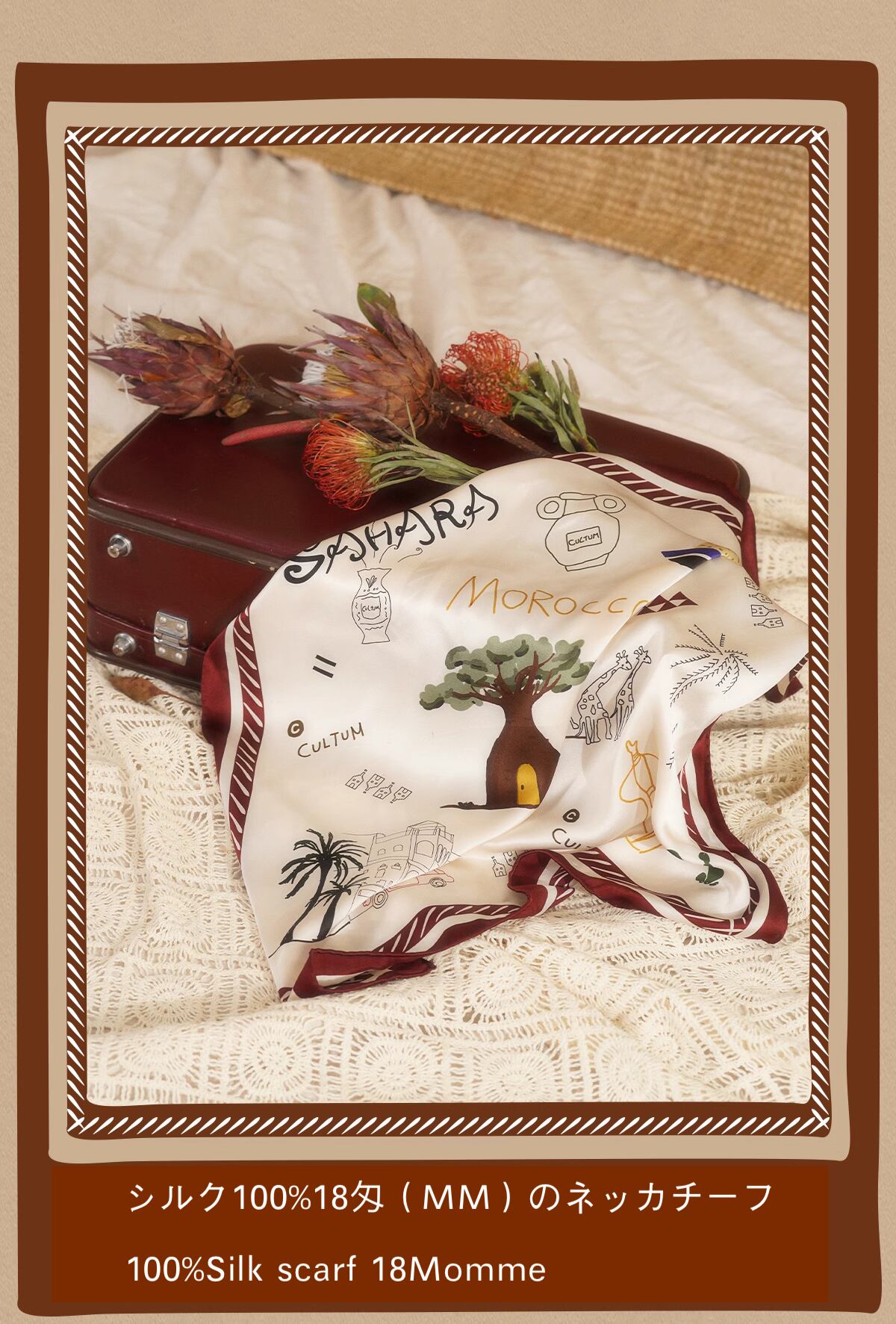 ・素材は高級シルク100%18匁(MM)を使用しており、製造国は中国です。